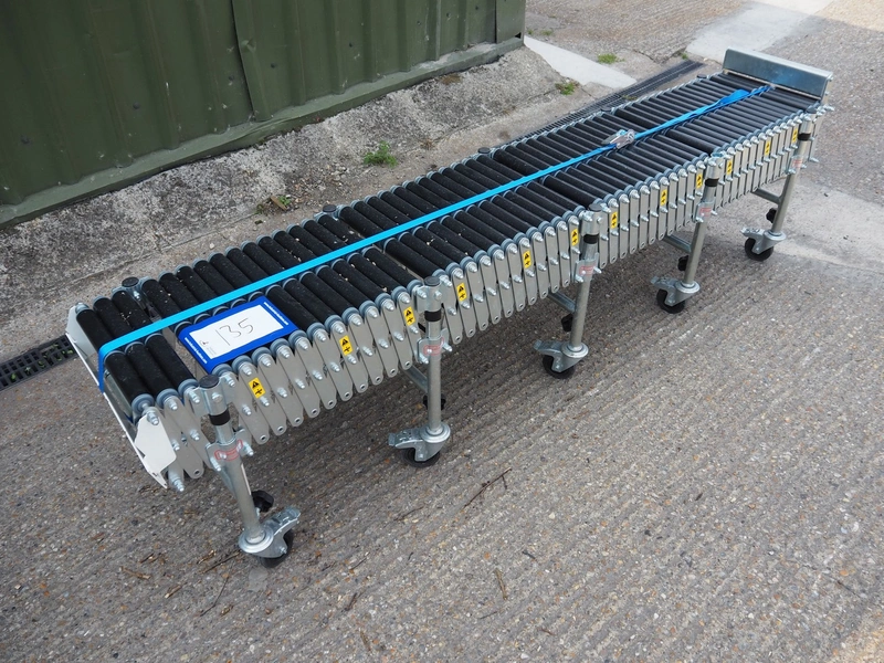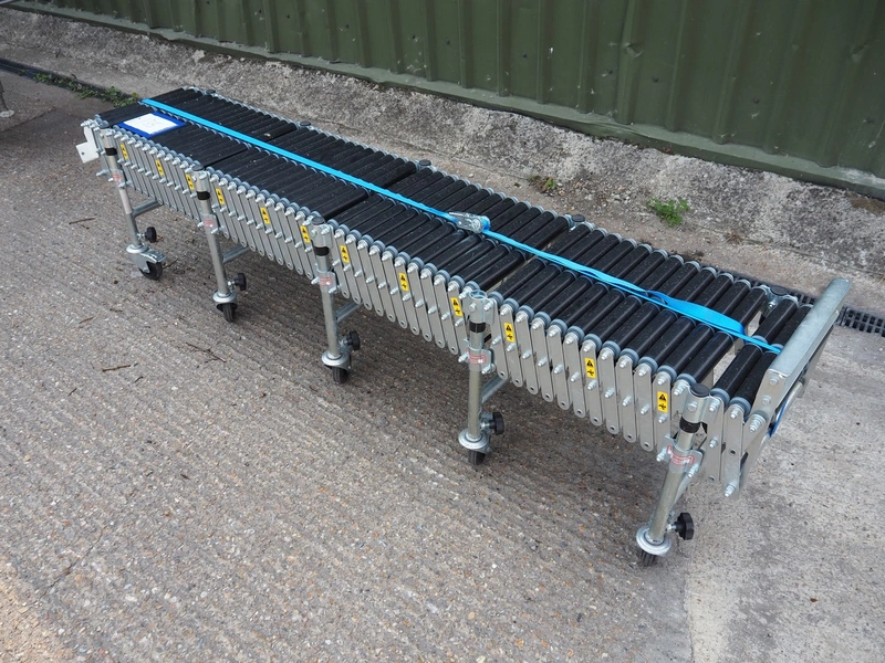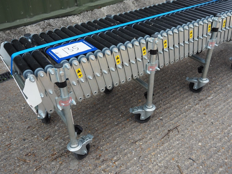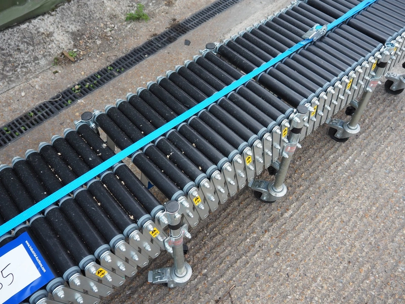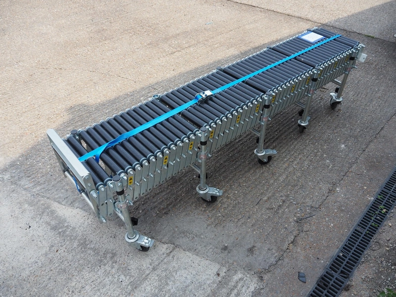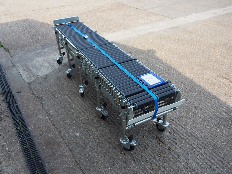 Mobile extendable roller conveyor with plastic rollers, roller width: (2x) 180 mm, total dimensions: 2300 mm x 500 mm x 550 mm.