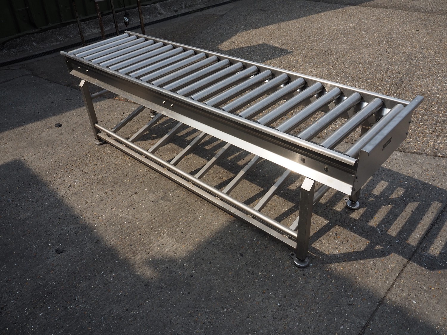 Syspal s/s roller conveyor, roller width: 480 mm, total dimensions: 2200 mm x 550 mm x 700 mm.