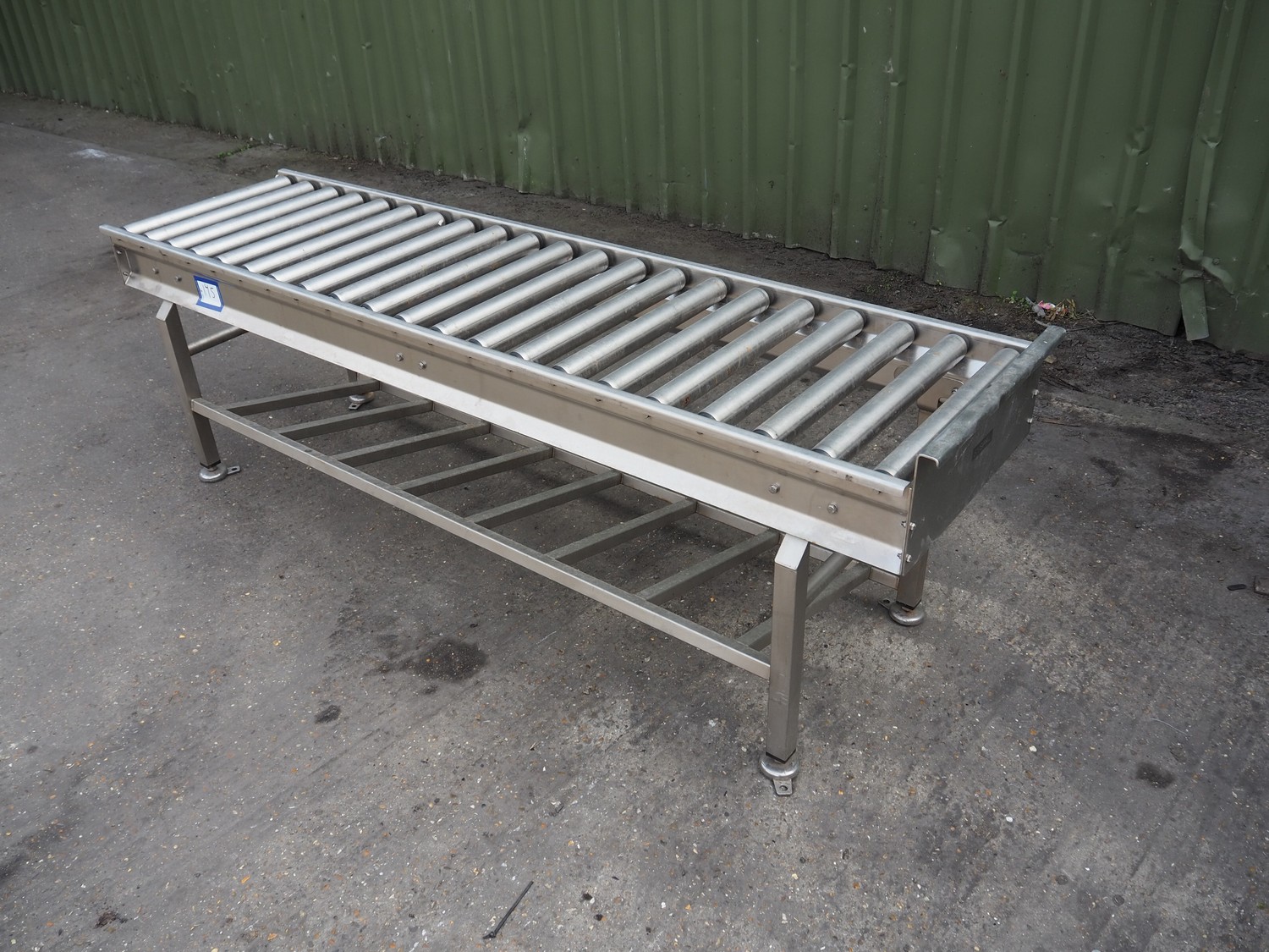 Syspal s/s roller conveyor, roller width: 480 mm, total dimensions: 2200 mm x 550 mm x 700 mm.