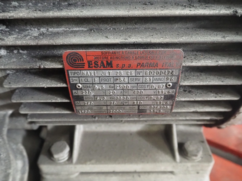2 side channel blower with ESAM s.p.a. motors, type: MAXI JET 2S CE, number: 60200472, 60200474, dimensions: (2x) 600 mm x 400 mm x 700 mm.