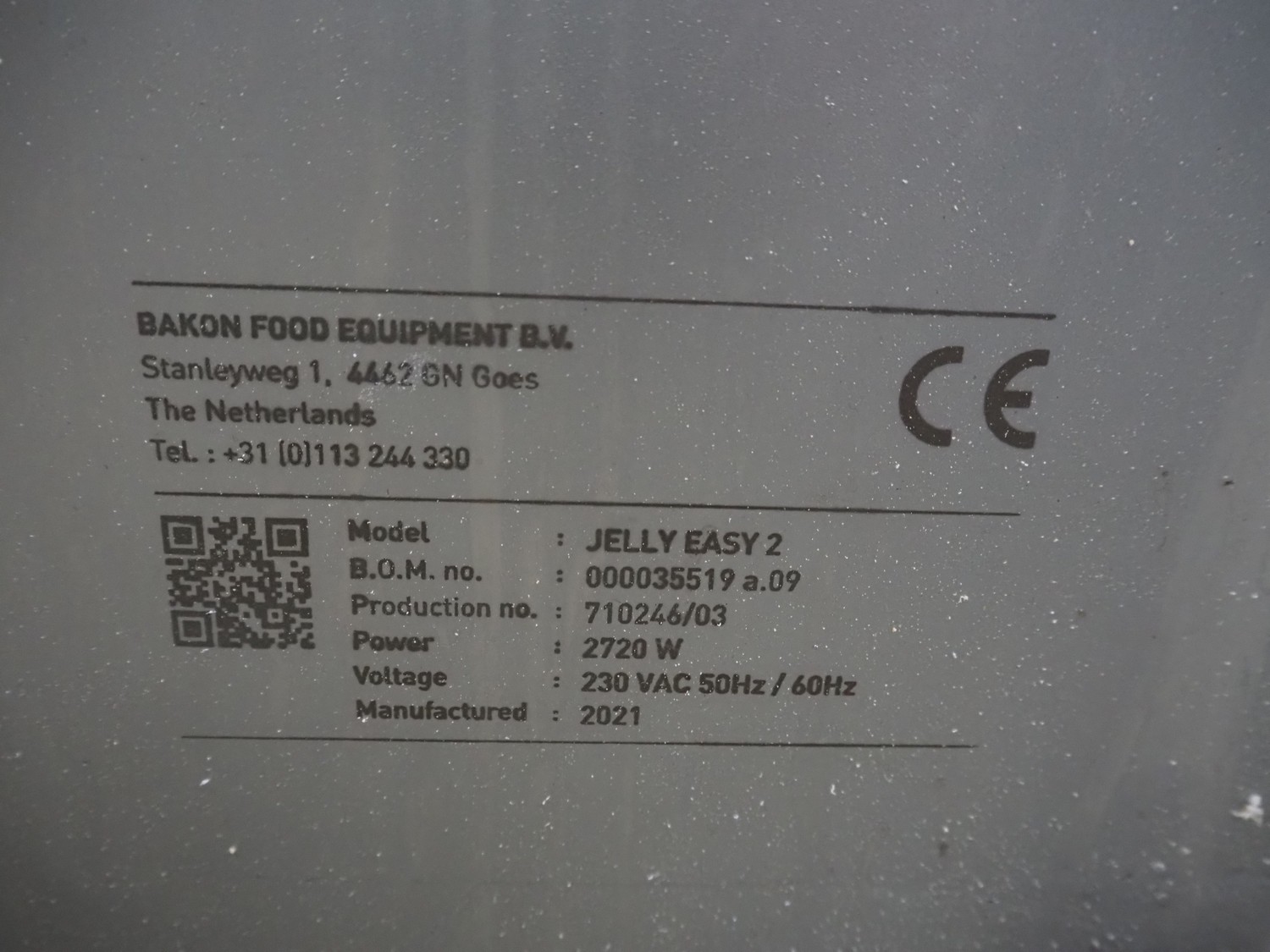 Bakon Food Equipment B.V. mobile jelly machine, model: JELLY EASY 2, production number: 710246/03, year of construction: 2021, 230 V, 50/60 Hz, 2720 W, dimensions: 680 mm x 500 mm x 1180 mm. Boiler clogged.