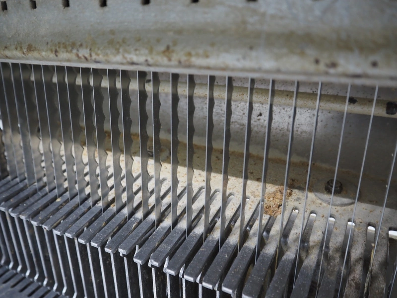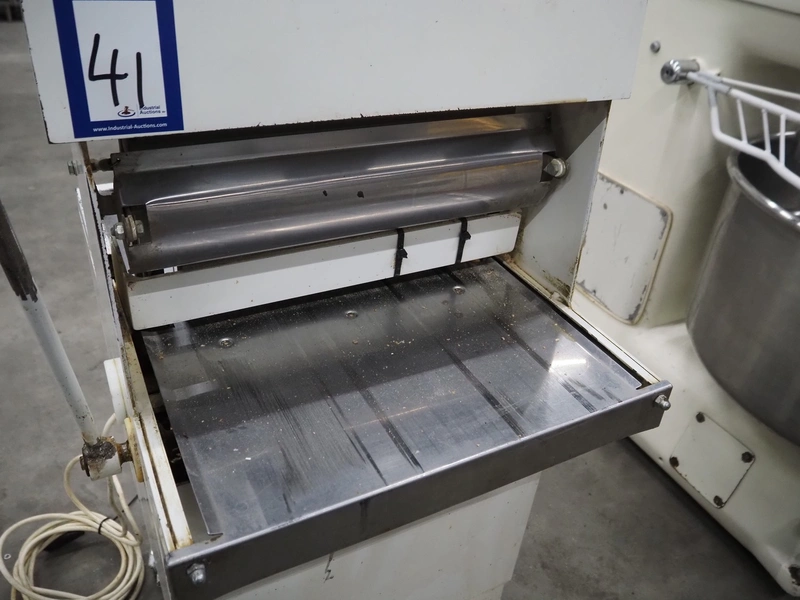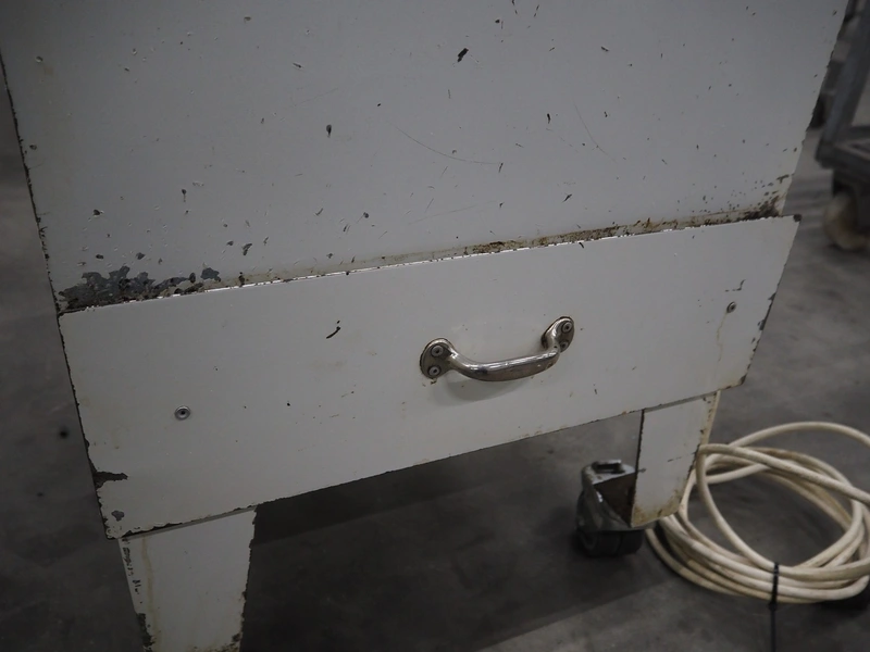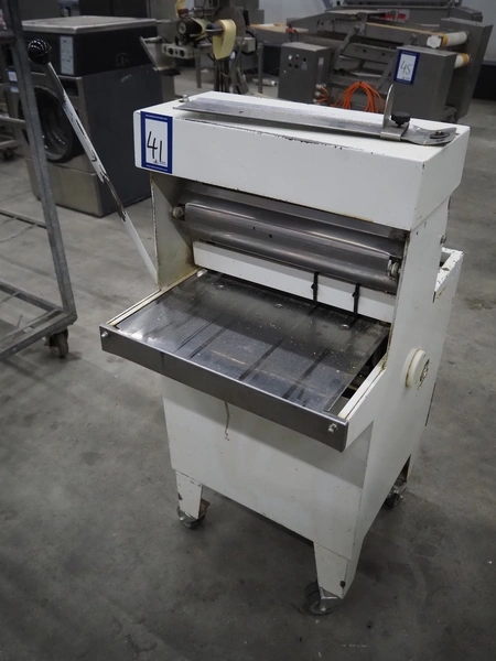 Mobile bread slicer, 33 knives, distance between knives: 10 mm, total dimensions: 650 mm x 570 mm x 1290 mm.