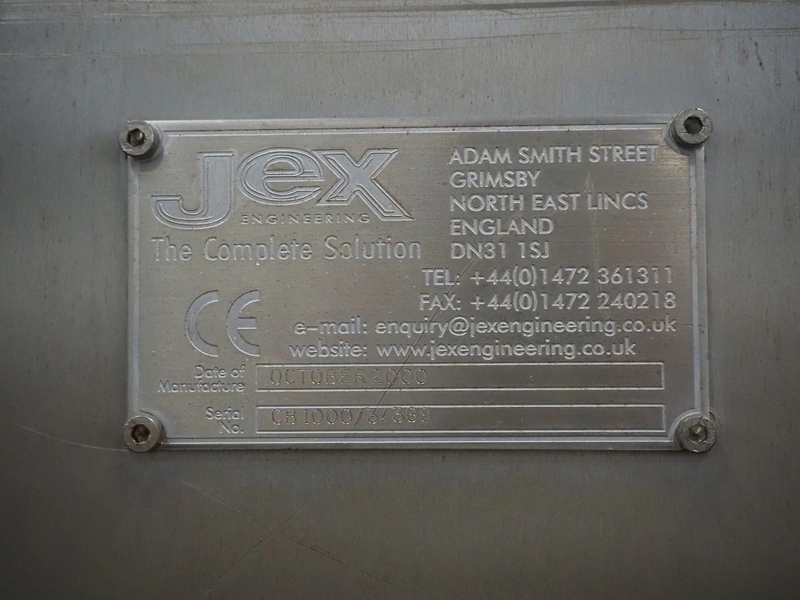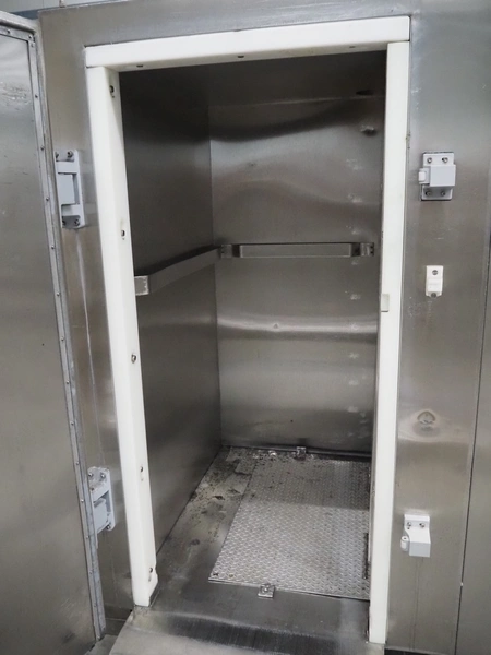 Jex Engineering nitrogen freezer for 1 trolley, serial number: CB1000/3/368, year of construction: October 2000, inside dimensions: 1150 mm x 750 mm x 1720 mm, total dimensions: 1550 mm x 1550 mm x 2650 mm.