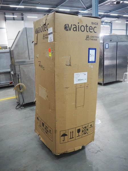 Vaiotec freezer, model: SNACKH400BTV, serial number: SK2224VG08SAK400B066, 230 V, 50 Hz, 2.7 A, refrigerant: R290, 120 gram, volume: 312 liter, dimensions: 750 mm x 700 mm x 1970 mm. Damaged.