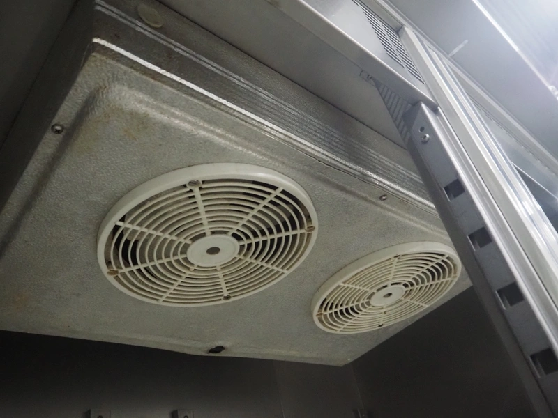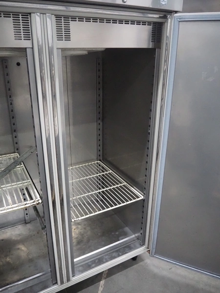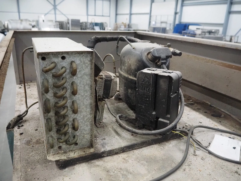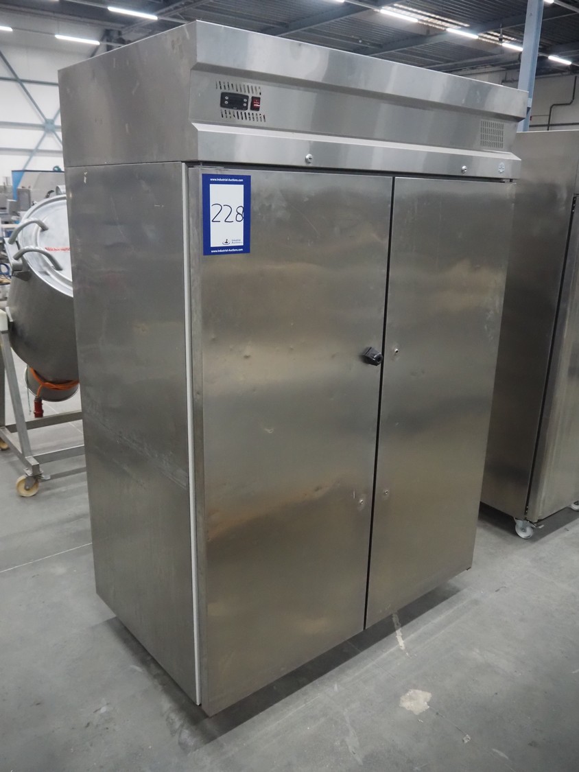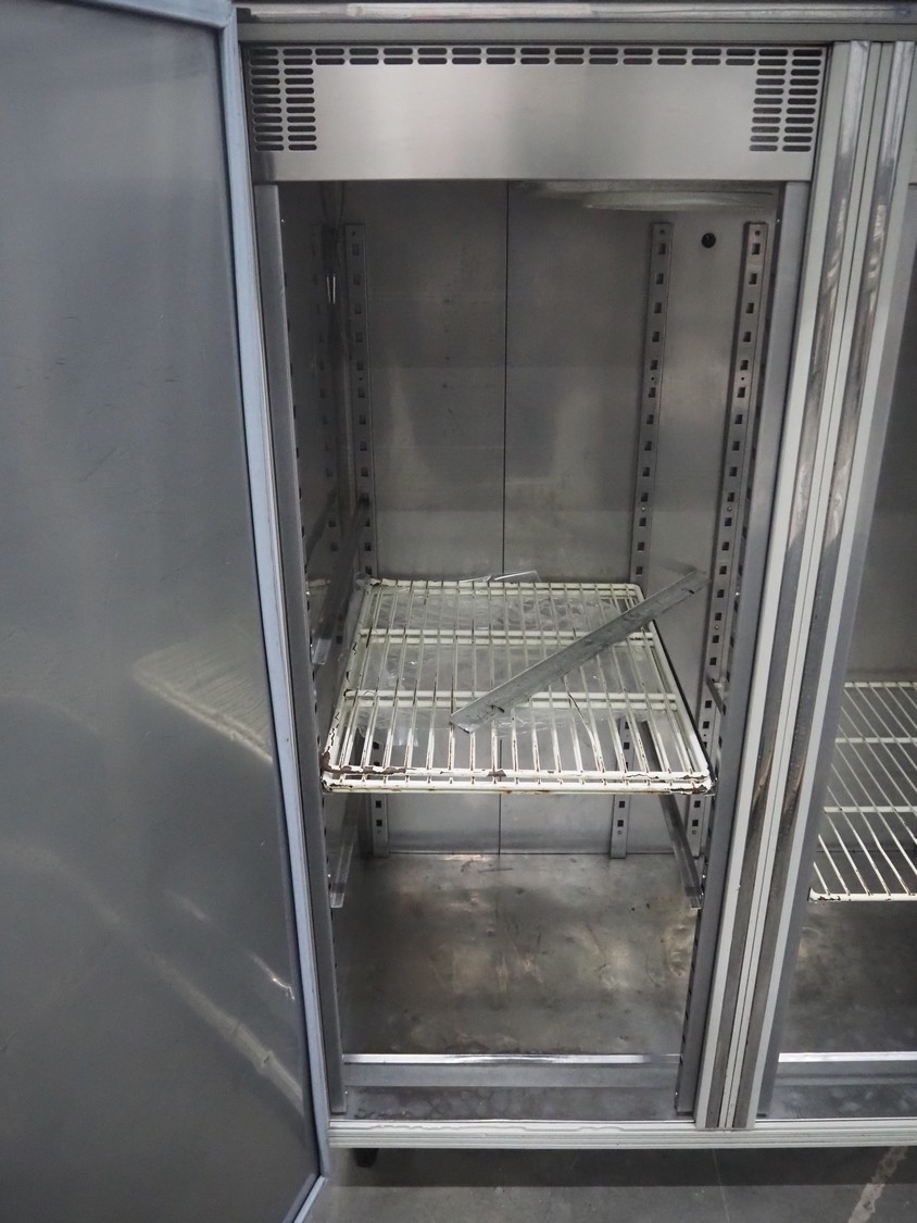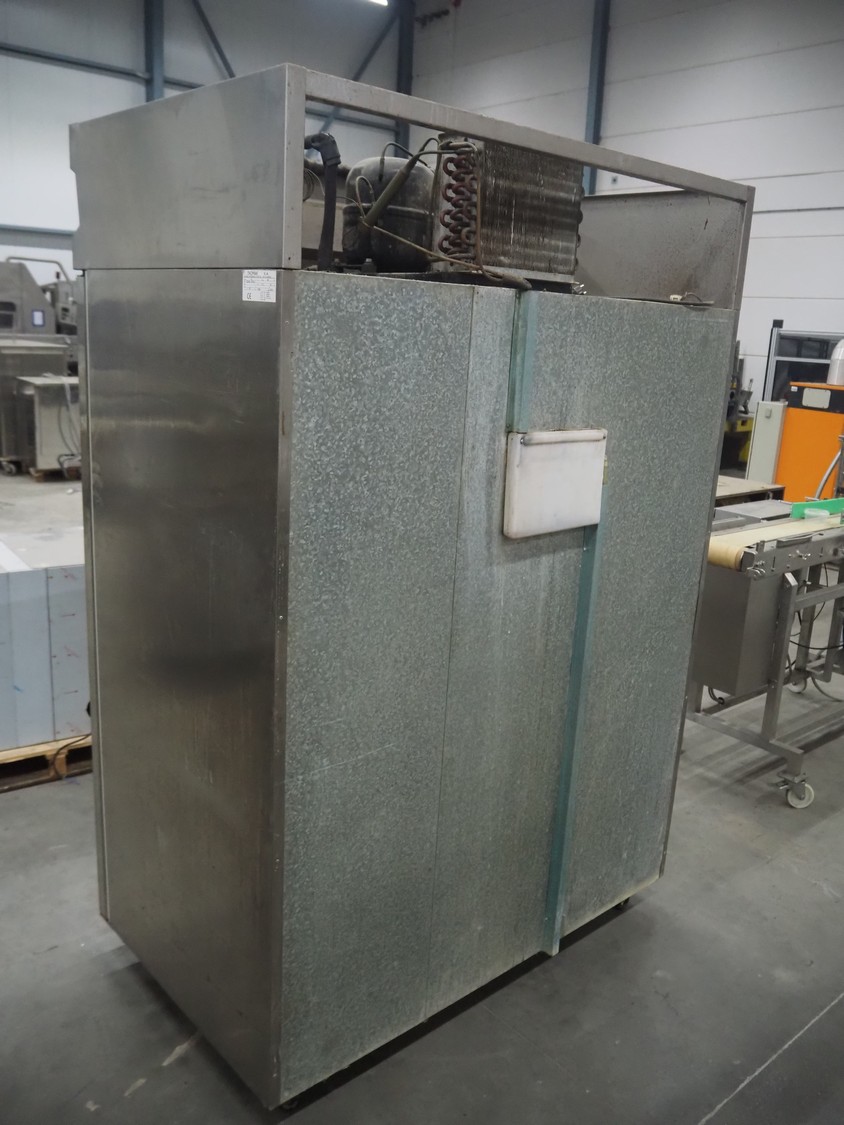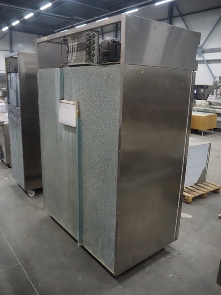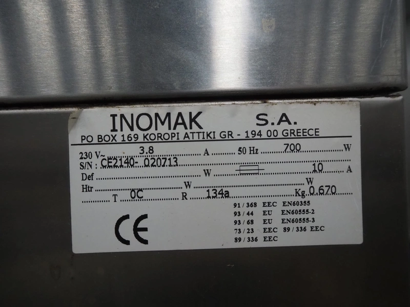 Inomak S.A. refrigerator, type: CE2140, number: 020713, 230 V, 50 Hz, 3.8 A, refrigerant: R134a, 0.670 kg, dimensions: 1390 mm x 840 mm x 2070 mm. Damaged.