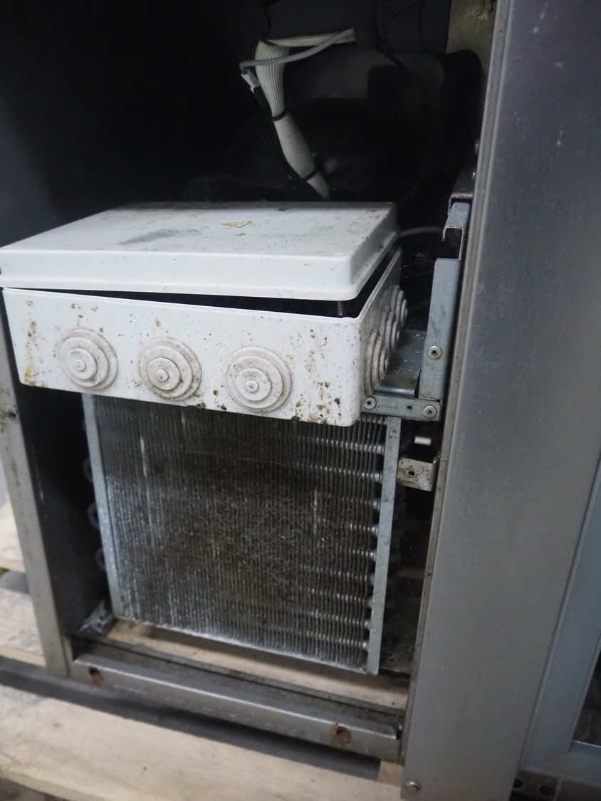 Franstal refrigerator, serial number: 141025007, 220-230 V, 50 Hz, 2,8 A, refrigerant: R404a / 400 gram, dimensions: 870 mm x 700 mm x 700 mm. Missing cover.