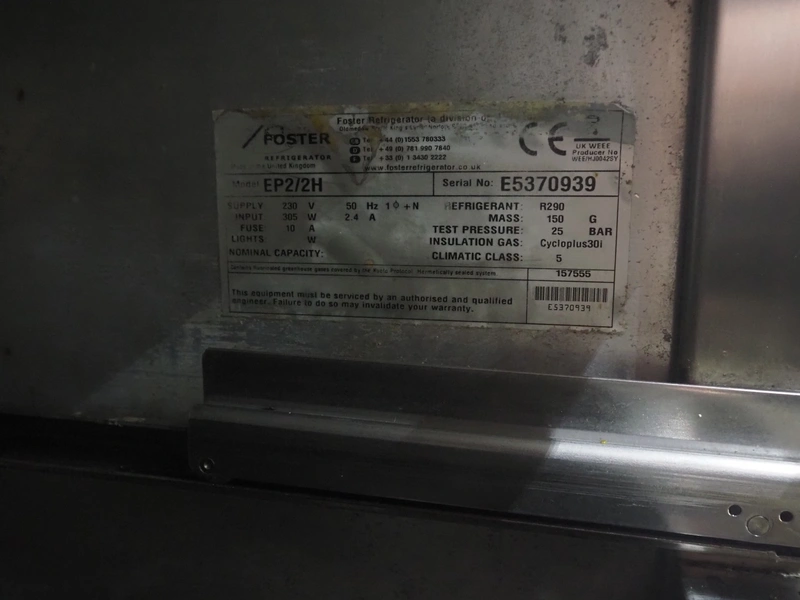Foster mobile refrigerator with 4 drawers, type: G2, model: EP2/2H, serial number: E5370939, refrigerant: R290, 150 g, 230 V, 1 Ph, 50 Hz, 2.4/10 A, 305 W, dimensions: 1830 mm x 800 mm x 830 mm.