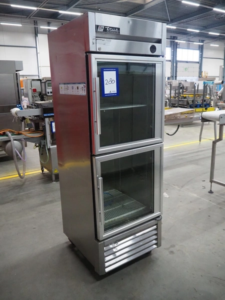 True mobile refrigerator, model: TS-23G-2, serial number: 7681744, 230 V, 50 Hz, 4 A, refrigerant: R134A, 0.34 kg, capacity: 652 liter, floor dimensions: 580 mm x 540 mm, inside dimensions: 600 mm x 610 mm x 1450 mm, total dimensions: 690 mm x 800 mm x 2070 mm.