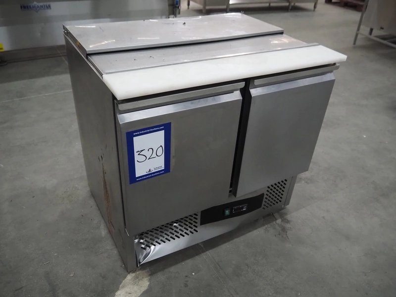 Combisteel refrigerator, model: SEC900, serial number: 277439, 230 V, 50 Hz, 1.6 A, 230 Watt, refrigerant: R134a / 165 gram, dimensions: 900 mm x 700 mm x 870 mm.
