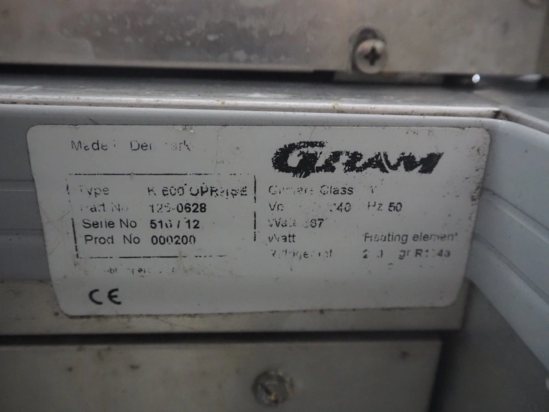 Gram mobile refrigerator, type: K600, serial number: 516/12, 4 floors, dimensions each floor: 525 mm x 590 mm, total dimensions: 700 mm x 850 mm x 2000 mm.