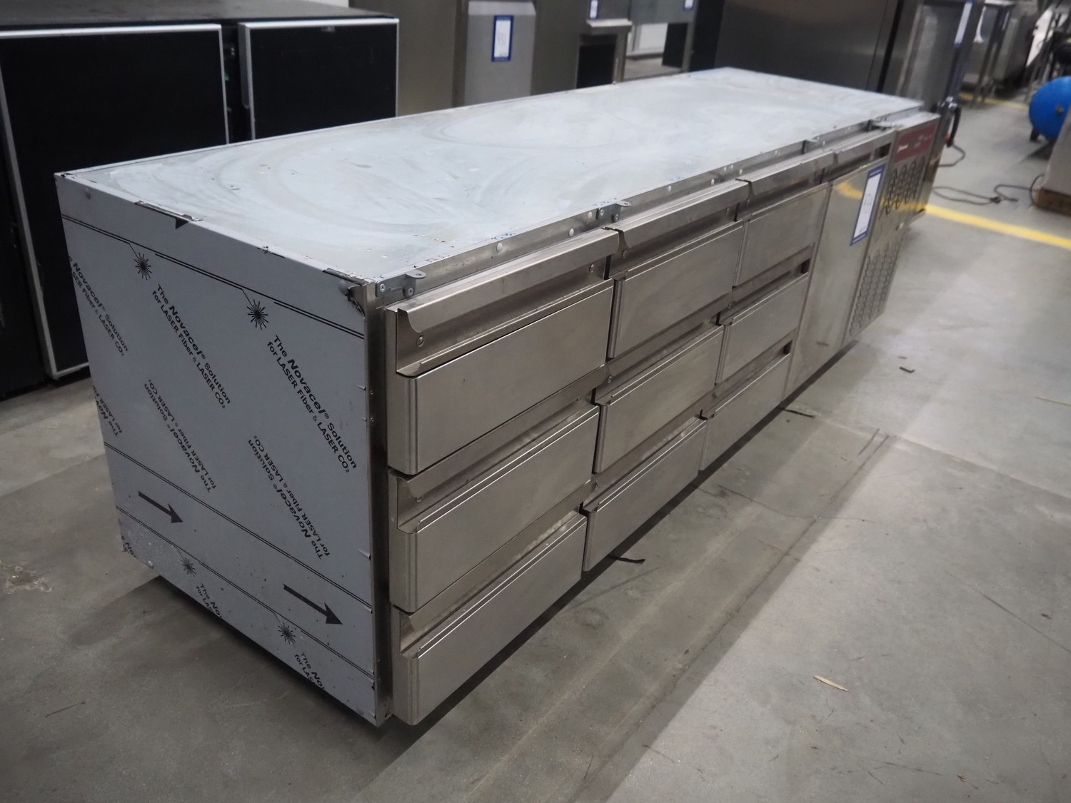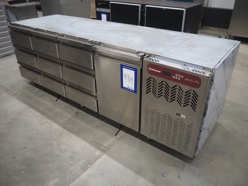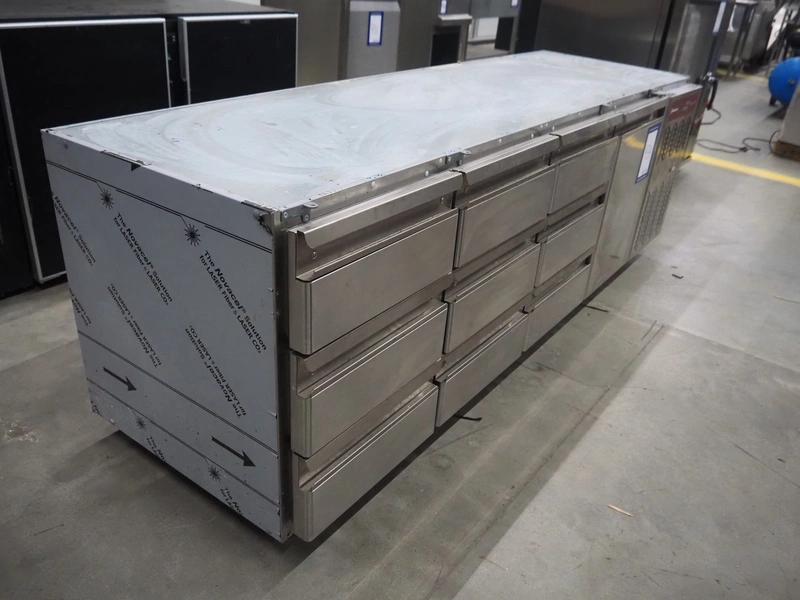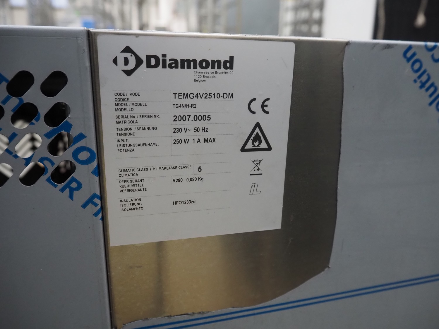 Diamond refrigerator with 9 drawers, model: TG4N/H-R2, serial number: 2007.0005, 230 V, 50 Hz, 1 A, 250 W, refrigerant: R290, 0,080 kg, floor dimensions: 520 mm x 320 mm, inside dimensions: (9x) 520 mm x 300 mm x 95 mm, total dimensions: 2250 mm x 700 mm x 760 mm.