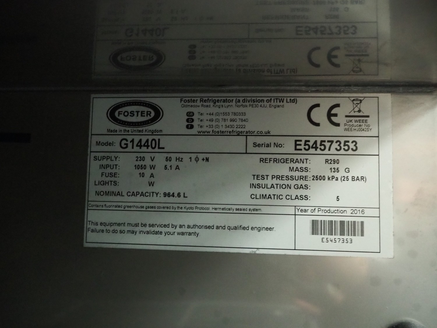Foster mobile refrigerator, model: G1440L, serial number: E5457353, year of construction: 2016, 230 V, 1 Ph, 50 Hz, 5.1 A, 1050 W, refrigerant: R290, 5 floors, dimensions each floor: 650 mm x 530 mm, total dimensions: 1440 mm x 840 mm x 2060 mm.