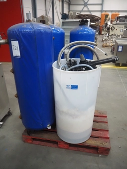 Pallet with water softener, consisting of 3 vessels and 1 plastic bin.0 bidsLot is closed