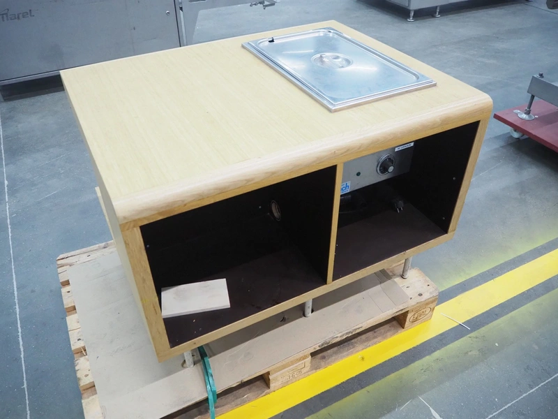Wooden counter with au-bain marie, dimensions inside: 505 mm x 305 mm x 185 mm, dimensions: 1000 mm x 800 mm x 700 mm.