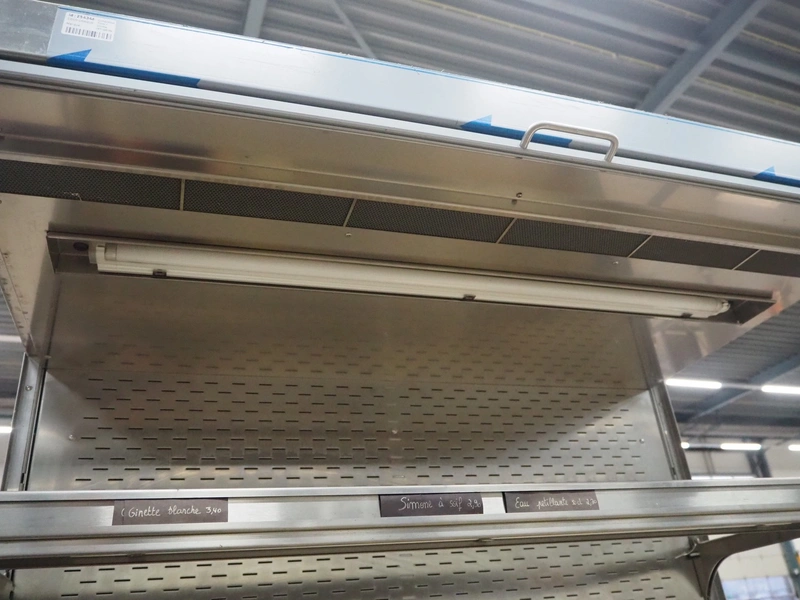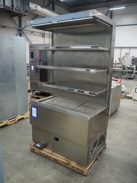 Refrigerated showcase, dimensions: 1000 mm x 1300 mm x 2040 mm.