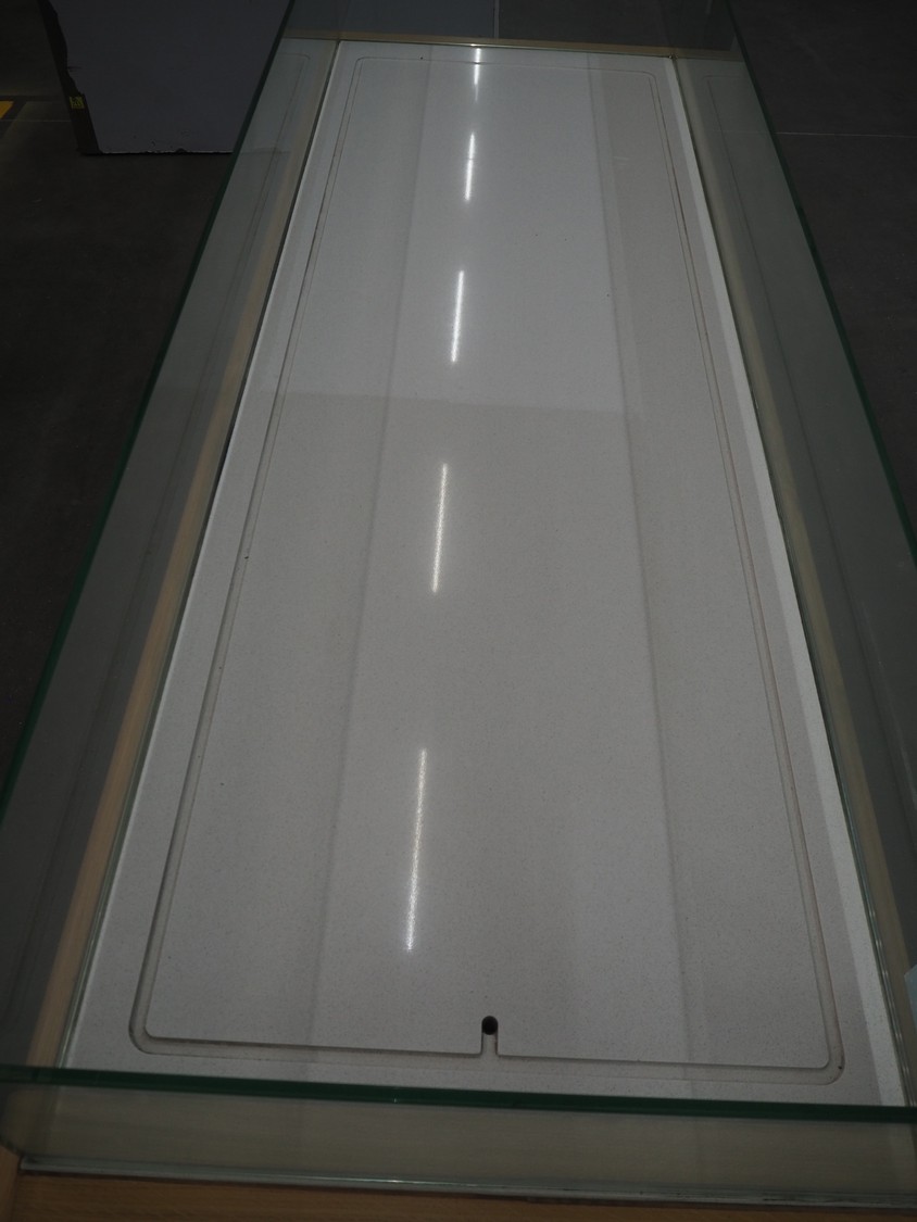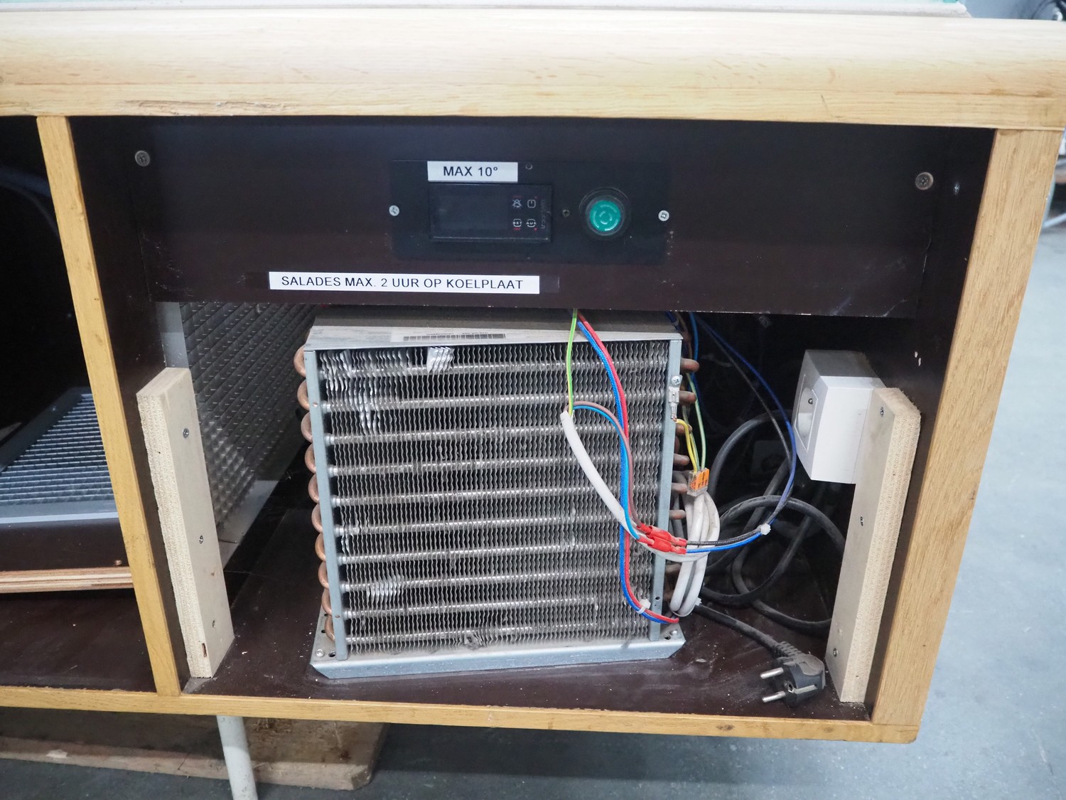 Refrigerated showcase, dimensions: 2150 mm x 800 mm x 1000 mm.