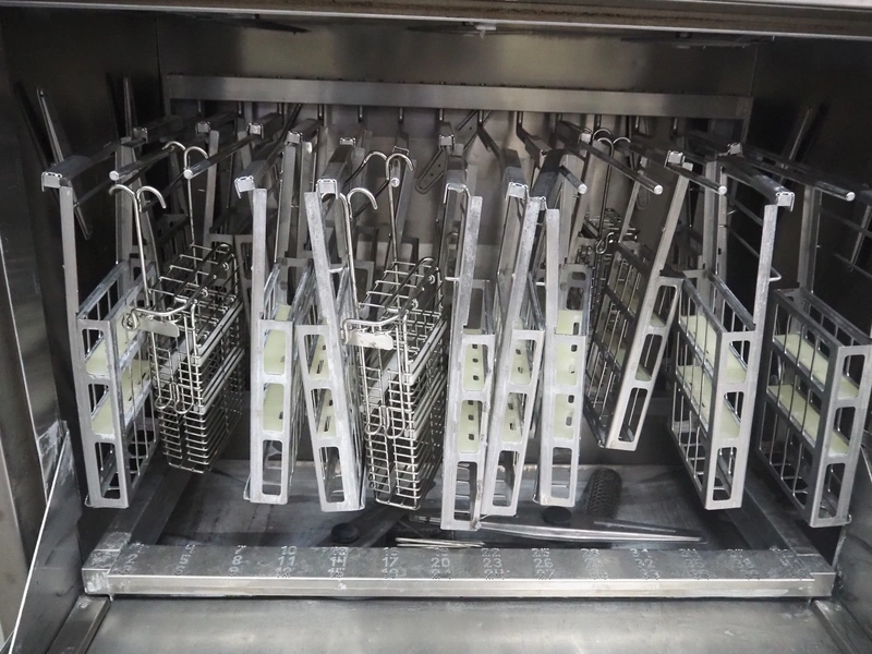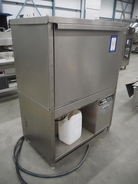 Pesutekno Oy chainmail glove and apron washer, model: Mahti 02, 14 racks, inside dimensions: 1060 mm x 510 mm x 670 mm, total dimensions: 1220 mm x 780 mm x 1680 mm.