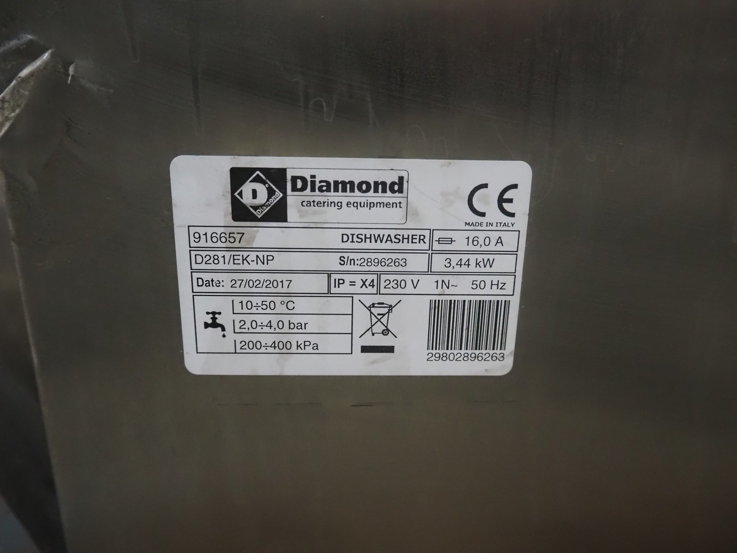 Diamond dishwasher, model: D281/EK-NP, serial number: 2896263, year of construction: 27-02-2017, 230 V, 1 Ph, 50 Hz, 3.44 kW, inside dimensions: 400 mm x 400 mm x 300 mm, total dimensions: 470 mm x 560 mm x 700 mm.