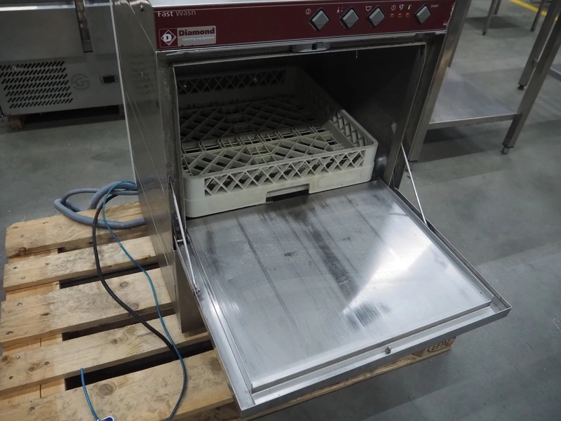 Diamond dishwasher, inside dimensions: 500 mm x 500 mm x 360 mm, total dimensions: 580 mm x 610 mm x 820 mm.