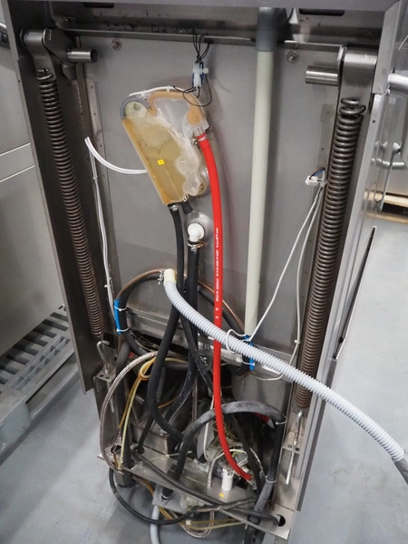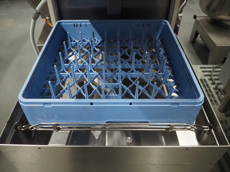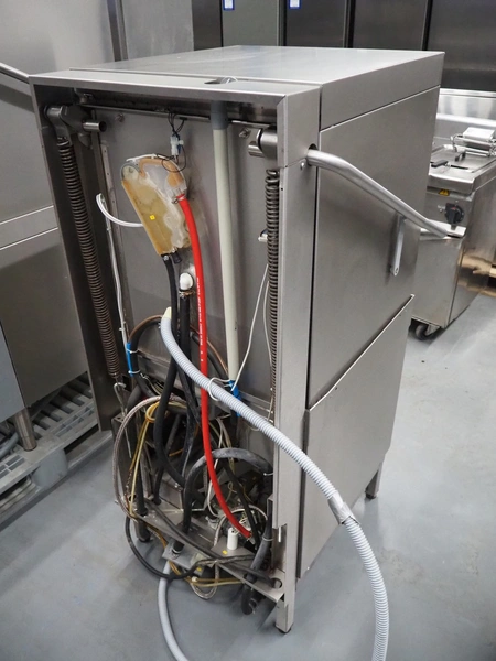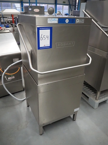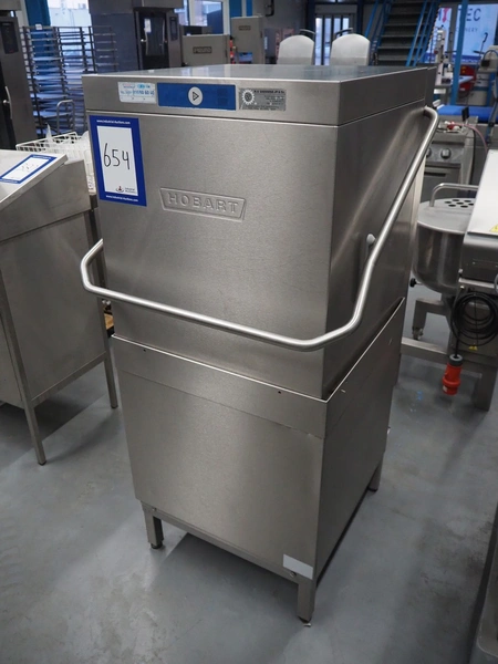 Hobart dishwasher, crate dimensions: 490 mm x 490 mm, total dimensions: 900 mm x 760 mm x 1500 mm. Missing hood.