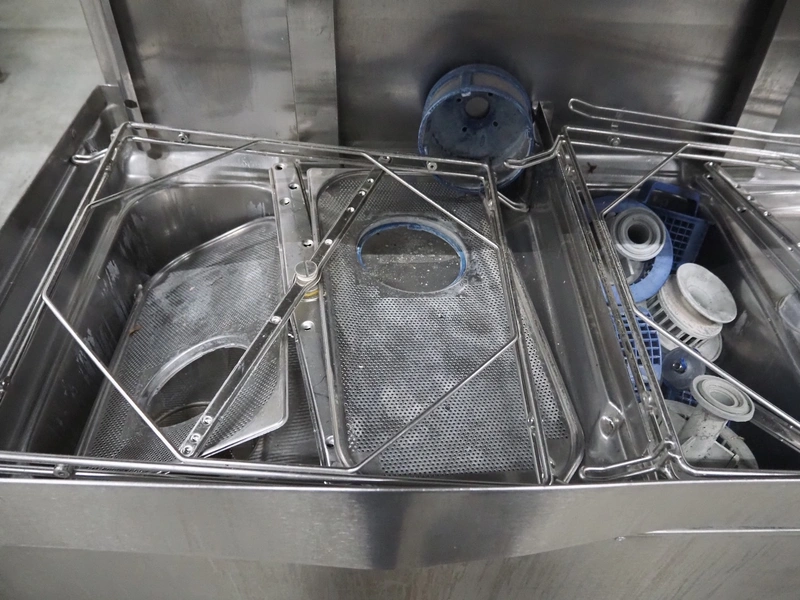 Hobart double dishwasher, inside dimensions: (2x) 300 mm x 500 mm x 400 mm, total dimensions: 1350 mm x 850 mm x 1500 mm. Technical condition unknown.