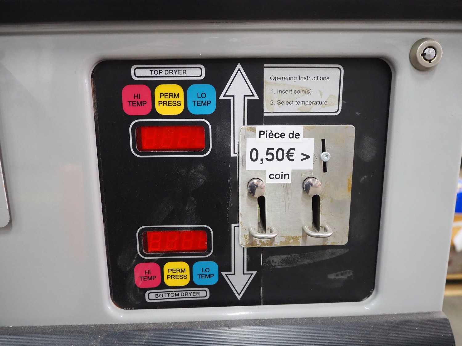 Double stacked dryer, inside dimensions: (2x) Ø 690 mm x 760 mm, total dimensions: 1200 mm x 760 mm x 2200 mm.