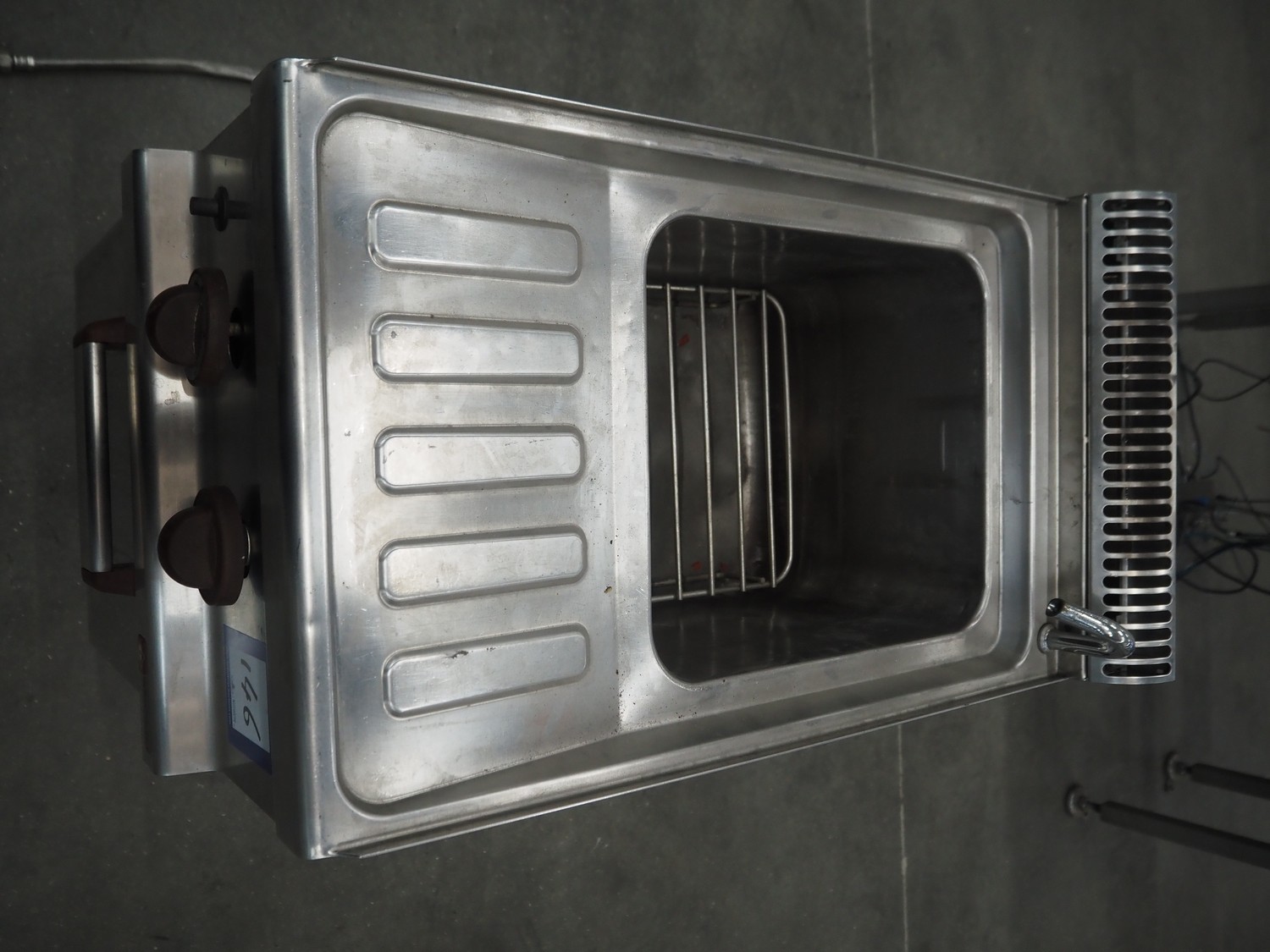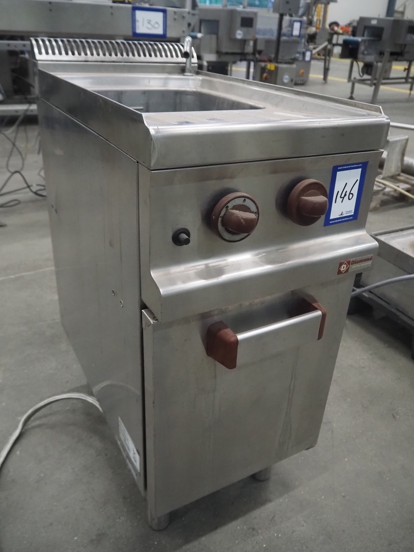 Diamond fryer, model: GC477 SC, serial number: 1086443, gas heated, dimensions: 400 mm x 800 mm x 950 mm.