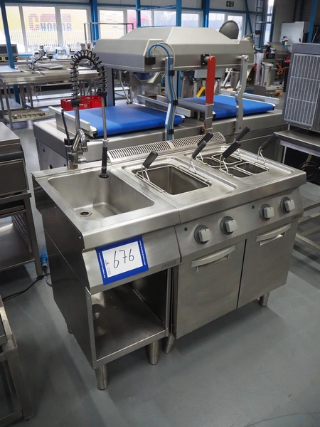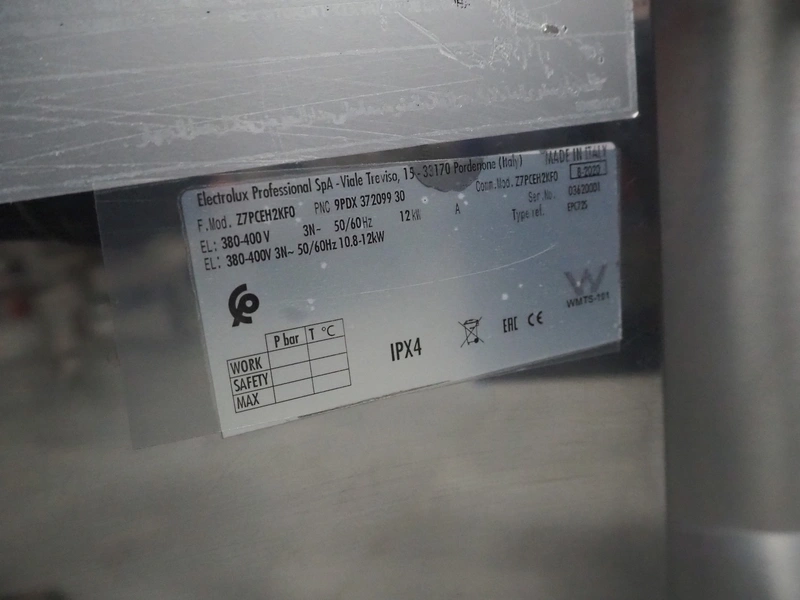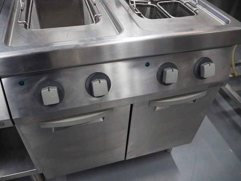 Zanussi pasta cooking machine, double basket, model: Z7PCEH2KF0, serial number: 036200001, 380-400 V, 3 Ph, 50/60 Hz, 12 kW, dimensions: 1200 mm x 730 mm x 1450 mm.