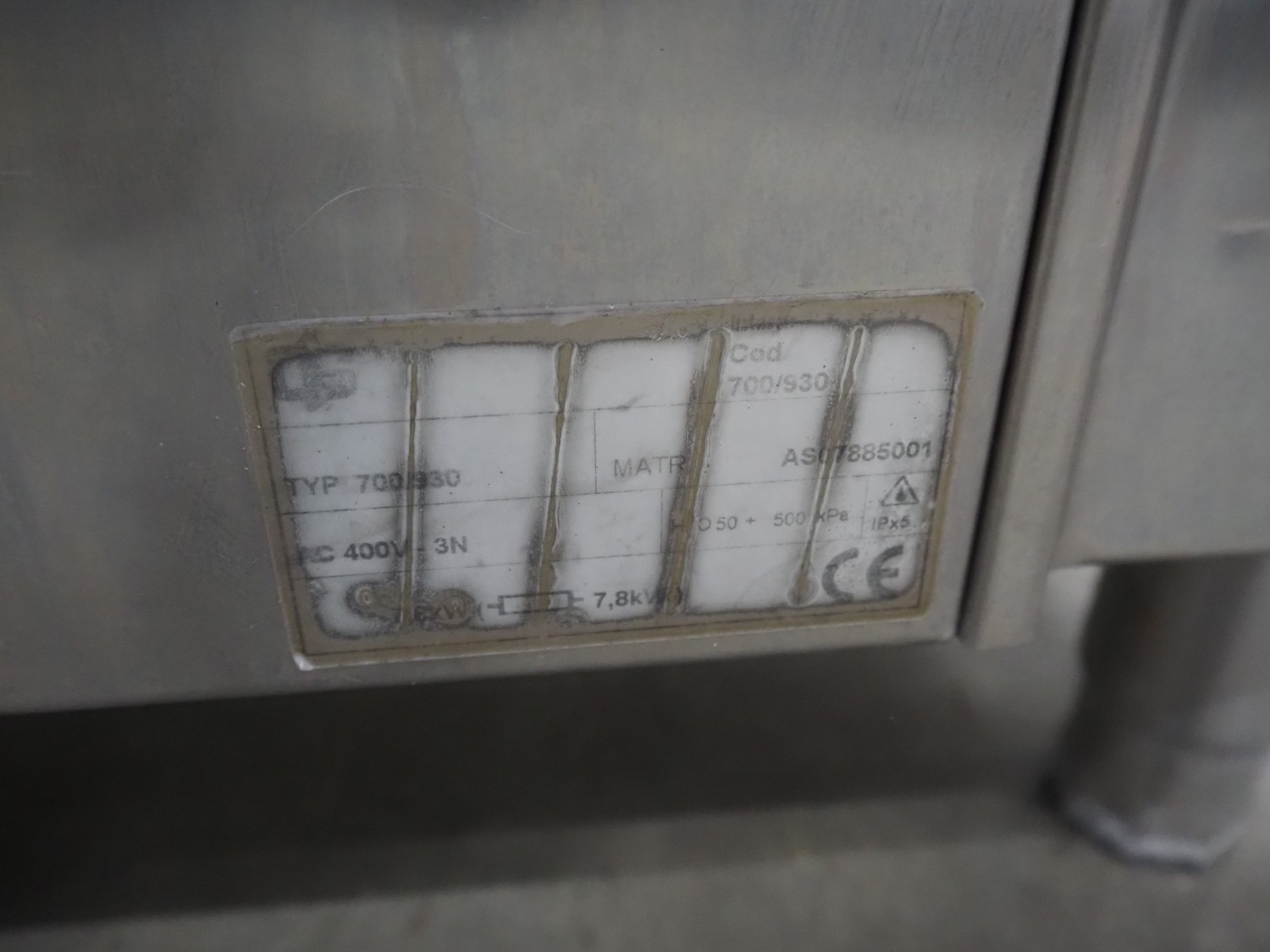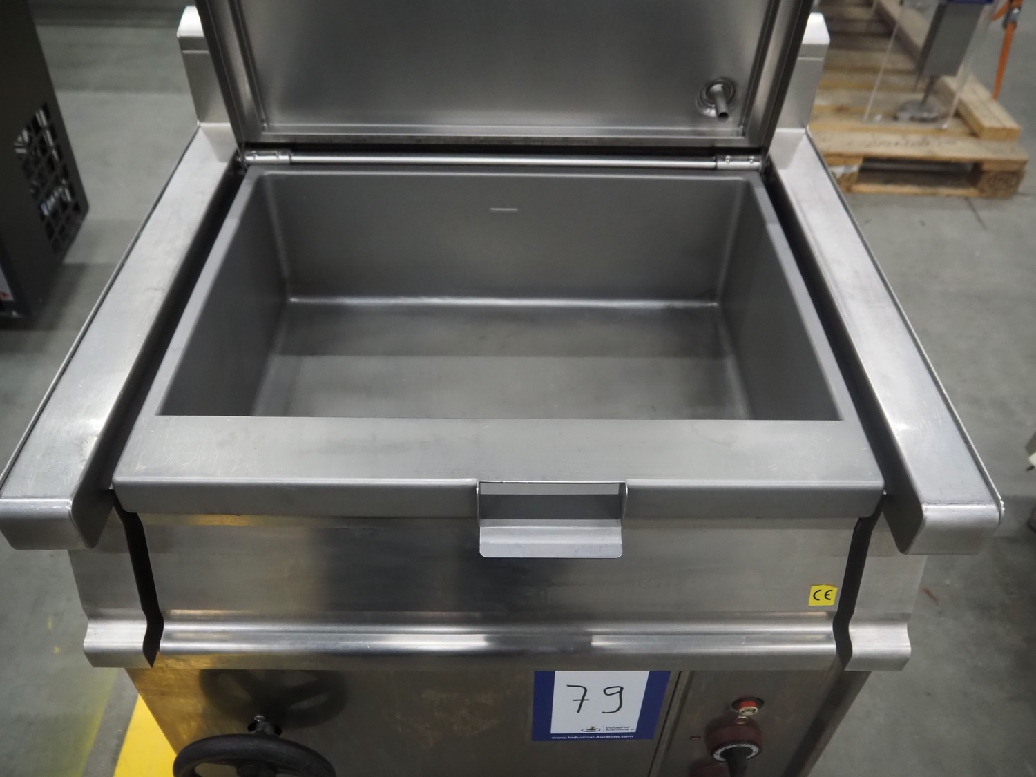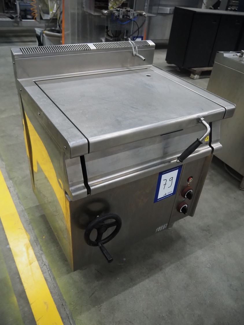 Tiltable frying pan, type: 700/930, serial number: AS07885001, 400 V, 3 Ph, 50 Hz, 7.8 kW, 500 kPa, inside dimensions: 600 mm x 430 mm x 200 mm, total dimensions: 810 mm x 750 mm x 1030 mm.