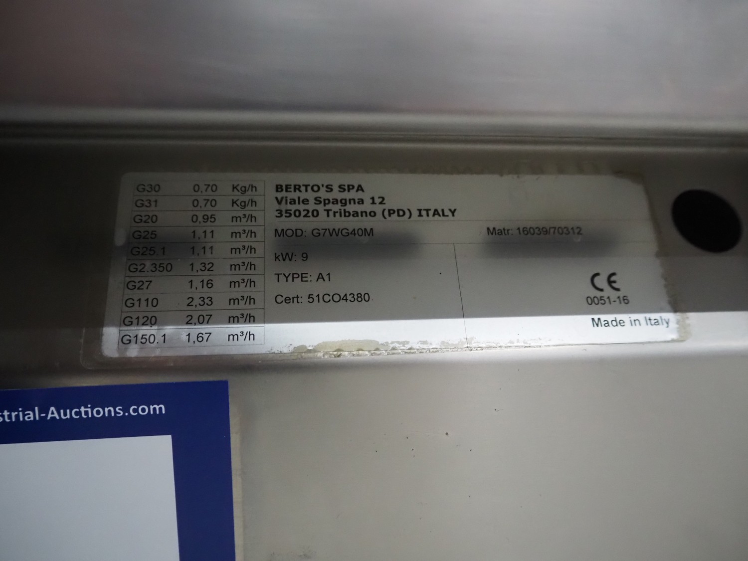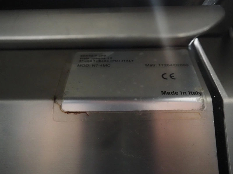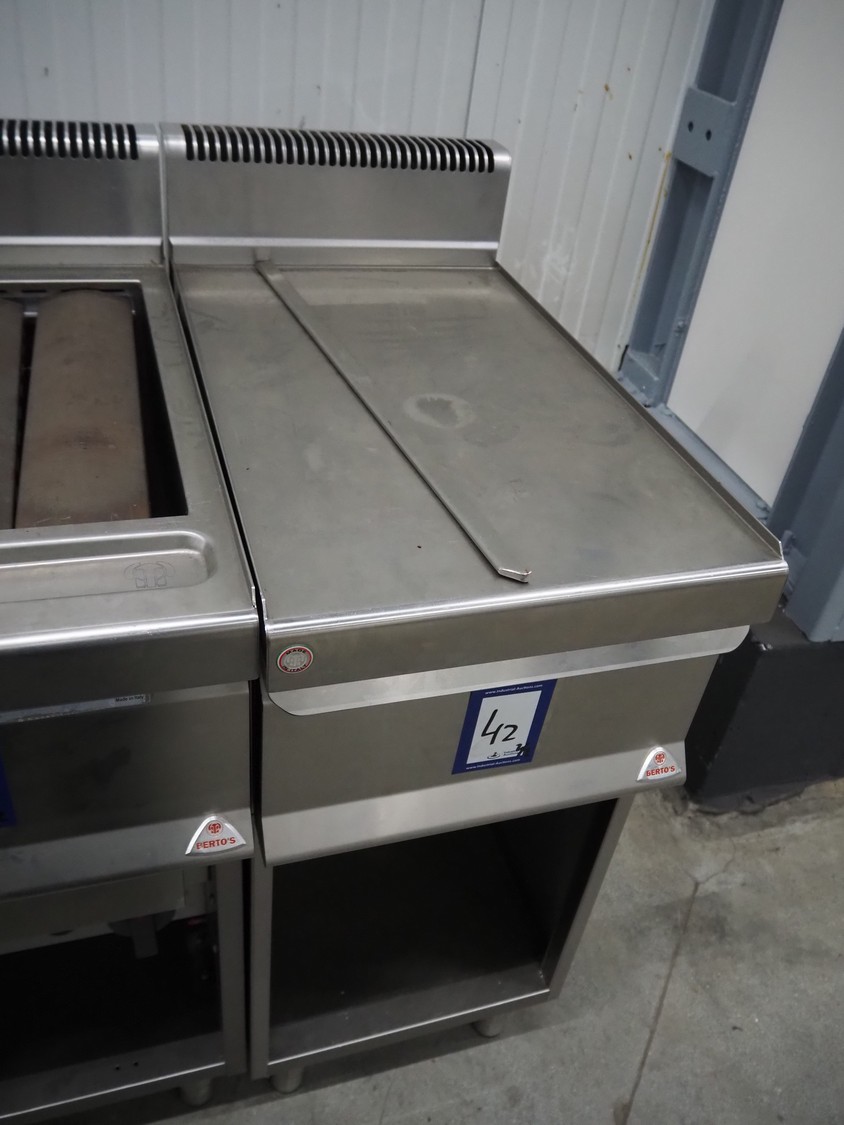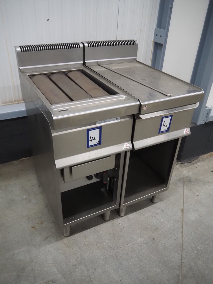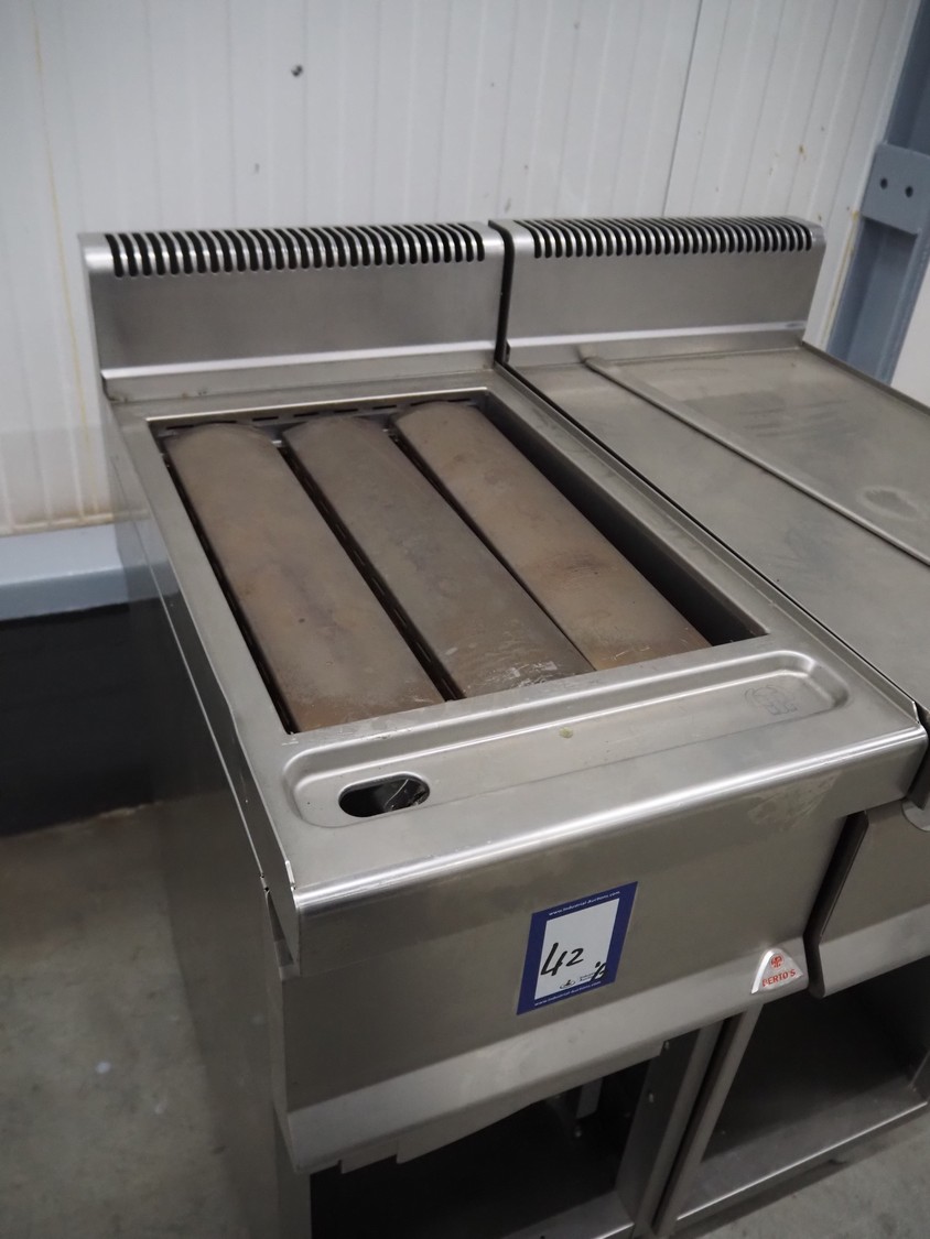 Berto's S.P.A. grill, model: G7WG40M, type: A1, serial number: 16039/70312, grill dimensions: 500 mm x 360 mm, total dimensions: 700 mm x 400 mm x 1050 mm. With Bertos s/s cabinet, model: N7-4MC, serial number: 17264/02860, dimensions: 700 mm x 400 mm x 1050 mm.