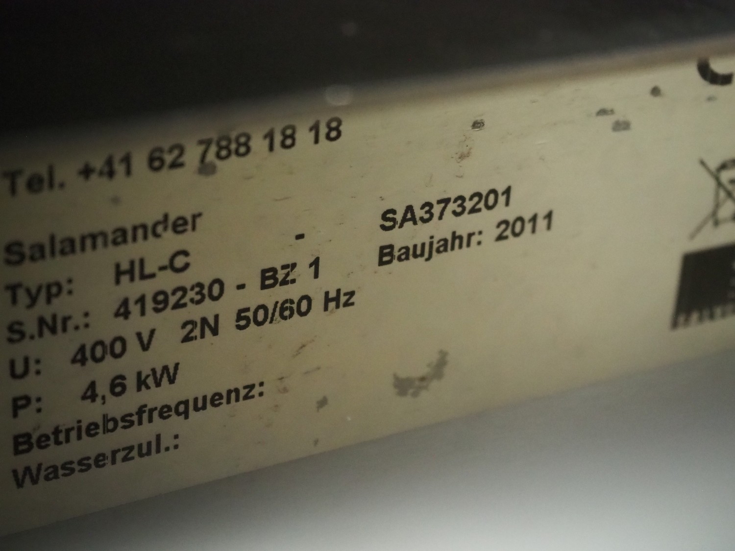 2 Salvis salamander grill, type: HL-C, serial number: 446812-BZ 1 and 419230-BZ 1, year of construction: 2016 and 2011, dimensions heater: (4x) 295 mm x 160 mm, plate dimensions: (2x) 480 mm x 330 mm, total dimensions: (2x) 600 mm x 530 mm x 445 mm.