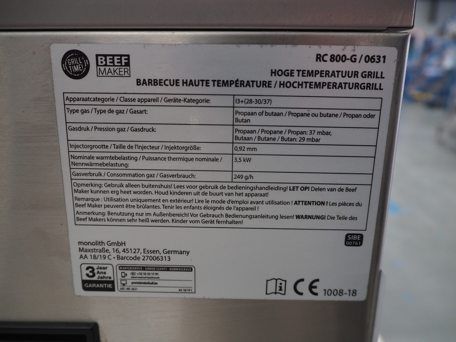 Monolith GmbH grill, type: RC 800-G/0631, gas heated, dimensions: 540 mm x 400 mm x 310 mm.