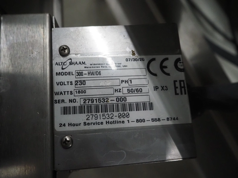 Alto Shaam heated showcase, model: 300-HW/D6, serial number: 2791532-000, 230 V, 1 Ph, 50/60 Hz, 1800 W, dimensions: 1200 mm x 700 mm x 930 mm.