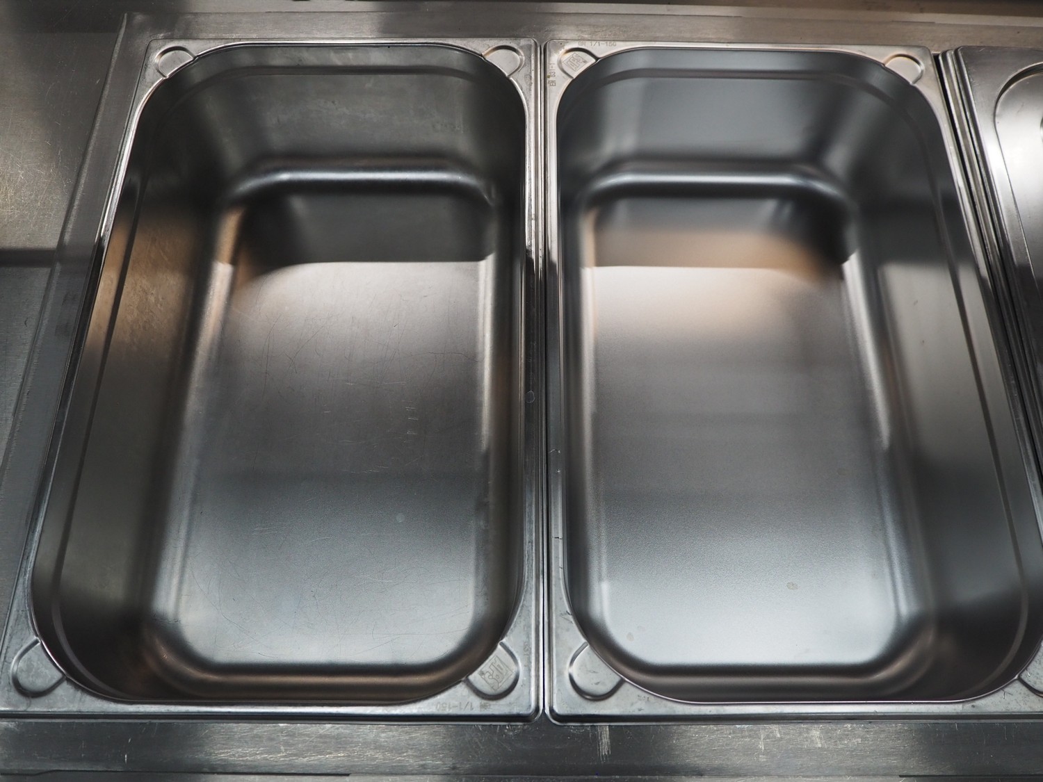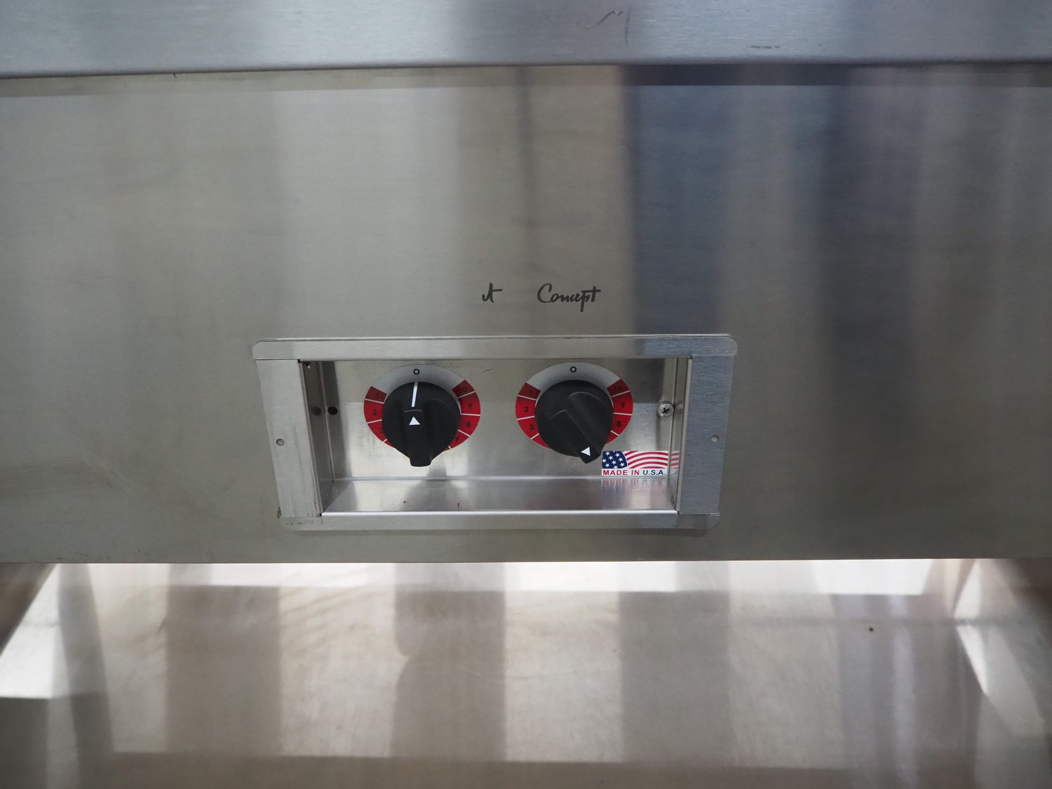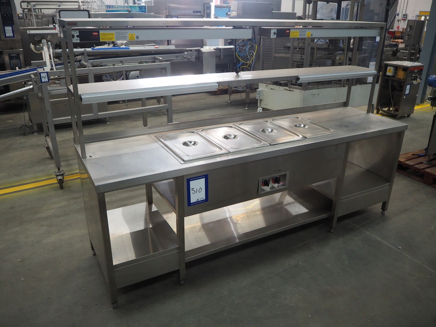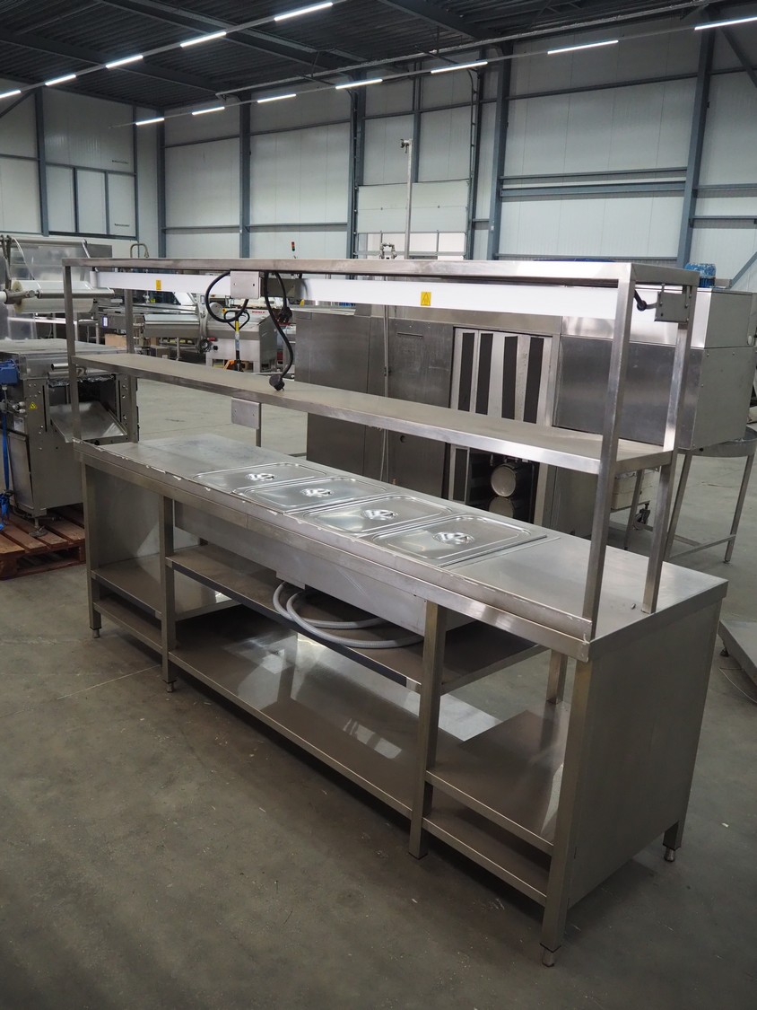 Hatco s/s kitchen counter with au bain marie, model: GRAH-48, serial number: 7959302109, 220-230 V, 50-60 Hz, 5/5.2 A, 1100/1202 W, dimensions: 2600 mm x 720 mm x 1710 mm.
