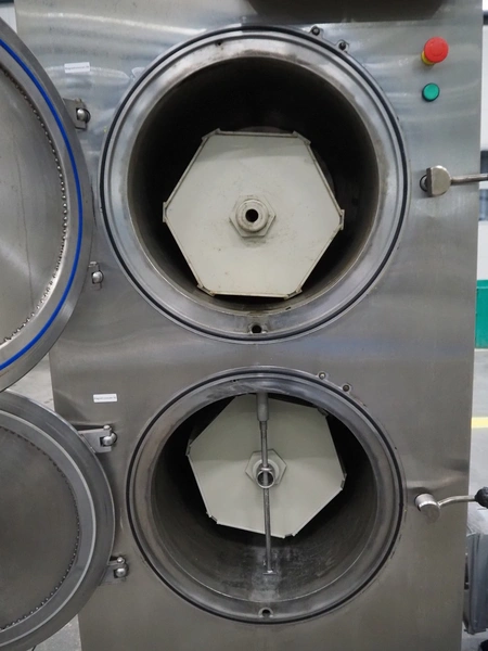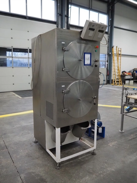 Vacuum oven/microwave, inside dimensions: (2x) Ø 440 mm x 690 mm, dimensions plastic forms: 500 mm x 370 mm x 550 mm, total dimensions: 1020 mm x 1600 mm x 2200 mm.