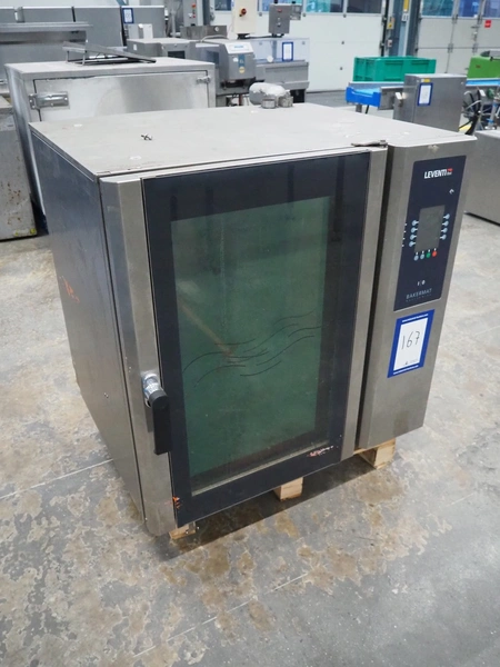 Leventi combi steamer, type: BM MM Q3, serial number: 08050089, year of construction: 2008, 380-415 V, 3 Ph, 50/60 Hz, 18.2 kW, 8 floors, dimensions each floor: 600 mm x 400 mm, total dimensions: 970 mm x 850 mm x 1100 mm.