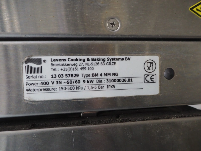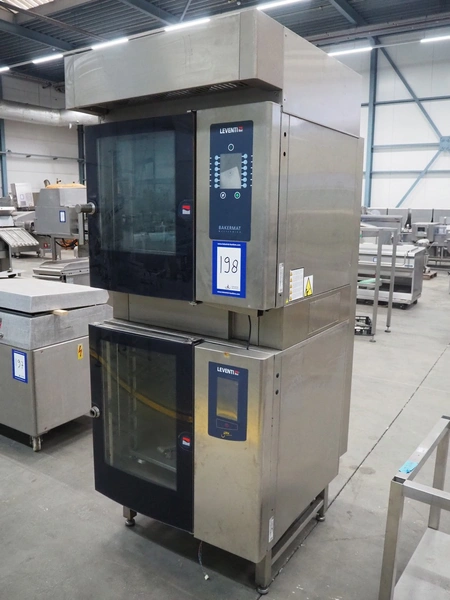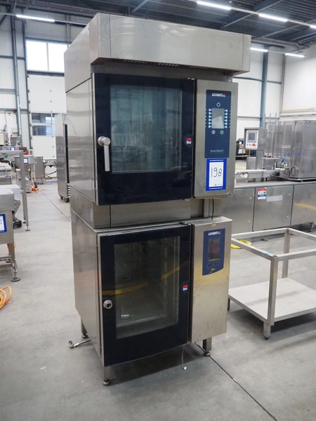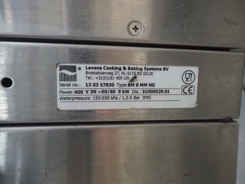 Leventi double combi steamer, type: BM 6 MM NG and BM 4 MM NG, number: 13 03 57830 and 13 03 57829, 400 V, 3 Ph, 50/60 Hz, 9 kW, 4 and 6 floors, dimensions each floor: 600 mm x 400 mm, total dimensions: 1000 mm x 900 mm x 2200 mm.