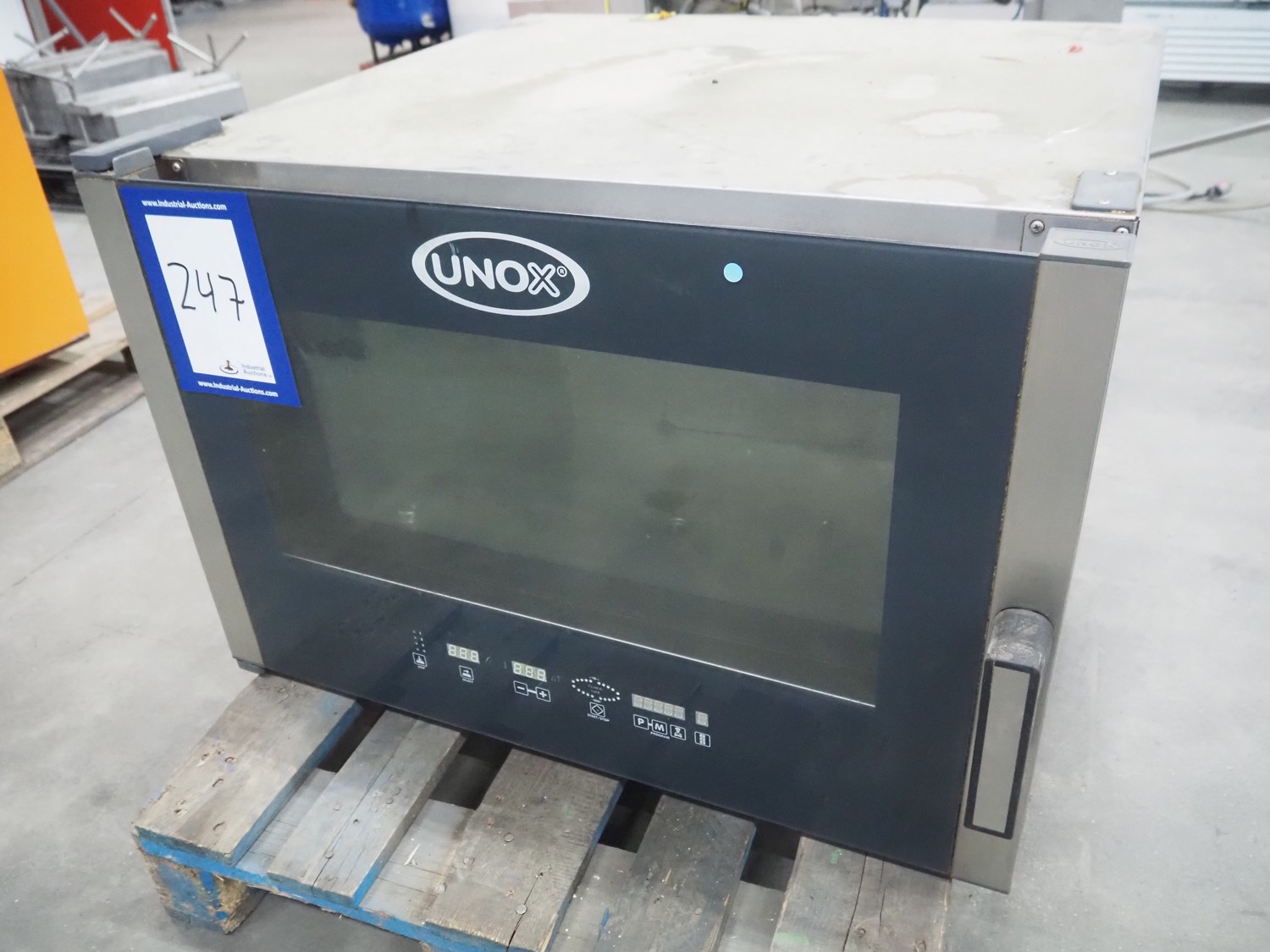 Unox combisteamer, type: XBC404, serial number: 353, 230/400 V, 3 Ph, 50/60 Hz, net weight: 60 kg, 4 floors, dimensions each floor: 360 mm x 600 mm, total dimensions: 860 mm x 560 mm x 700 mm.