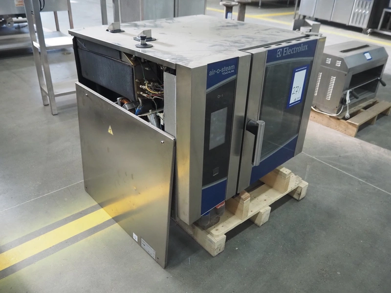 Electrolux combi steamer, type: Air-O-Steam, model: A0S061ETA1, serial number: 04304005, year of construction: 2010, 400 V, 3 Ph, 50/60 Hz, 15 A, 10.1 A, dimensions: 900 mm x 900 mm x 850 mm.