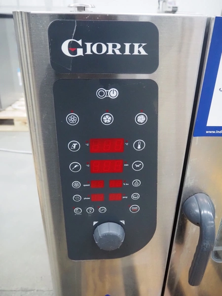 Giorik combi steamer, 400 V, 3 Ph, 50 Hz, 6 floors, dimensions each floor: 510 mm x 330 mm, total dimensions: 850 mm x 850 mm x 830 mm.