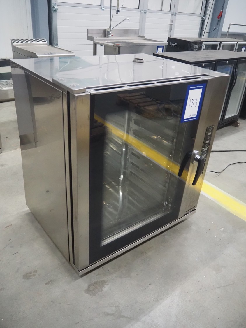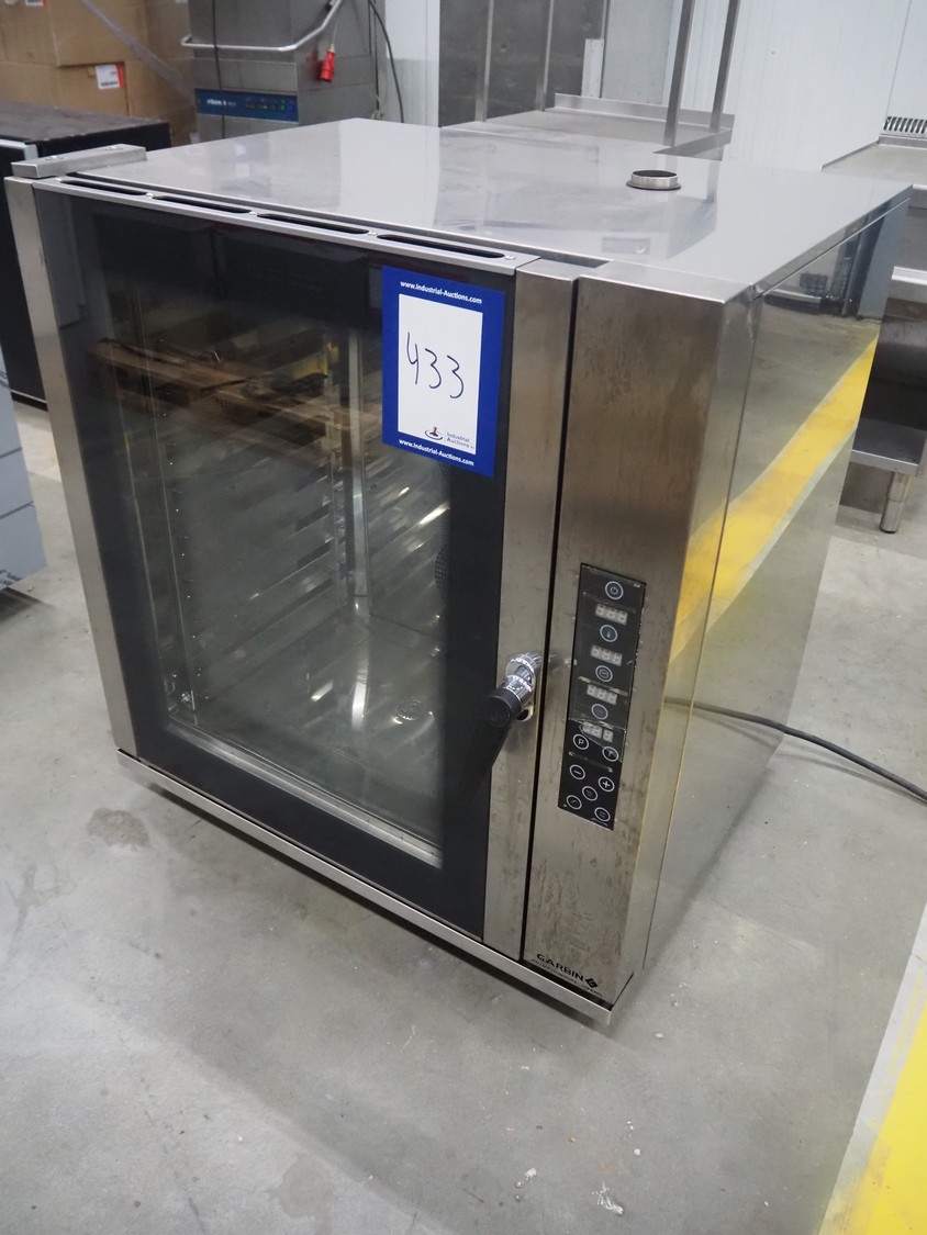 Garbin oven, model: 104 PE VAP, serial number: 104000, year of construction: 10/08/25, 400 V, 3 Ph, 50-60 Hz, 13.7 kW, 10 floors, dimensions each floor: 600 mm x 400 mm, total dimensions: 970 mm x 830 mm x 1100 mm.