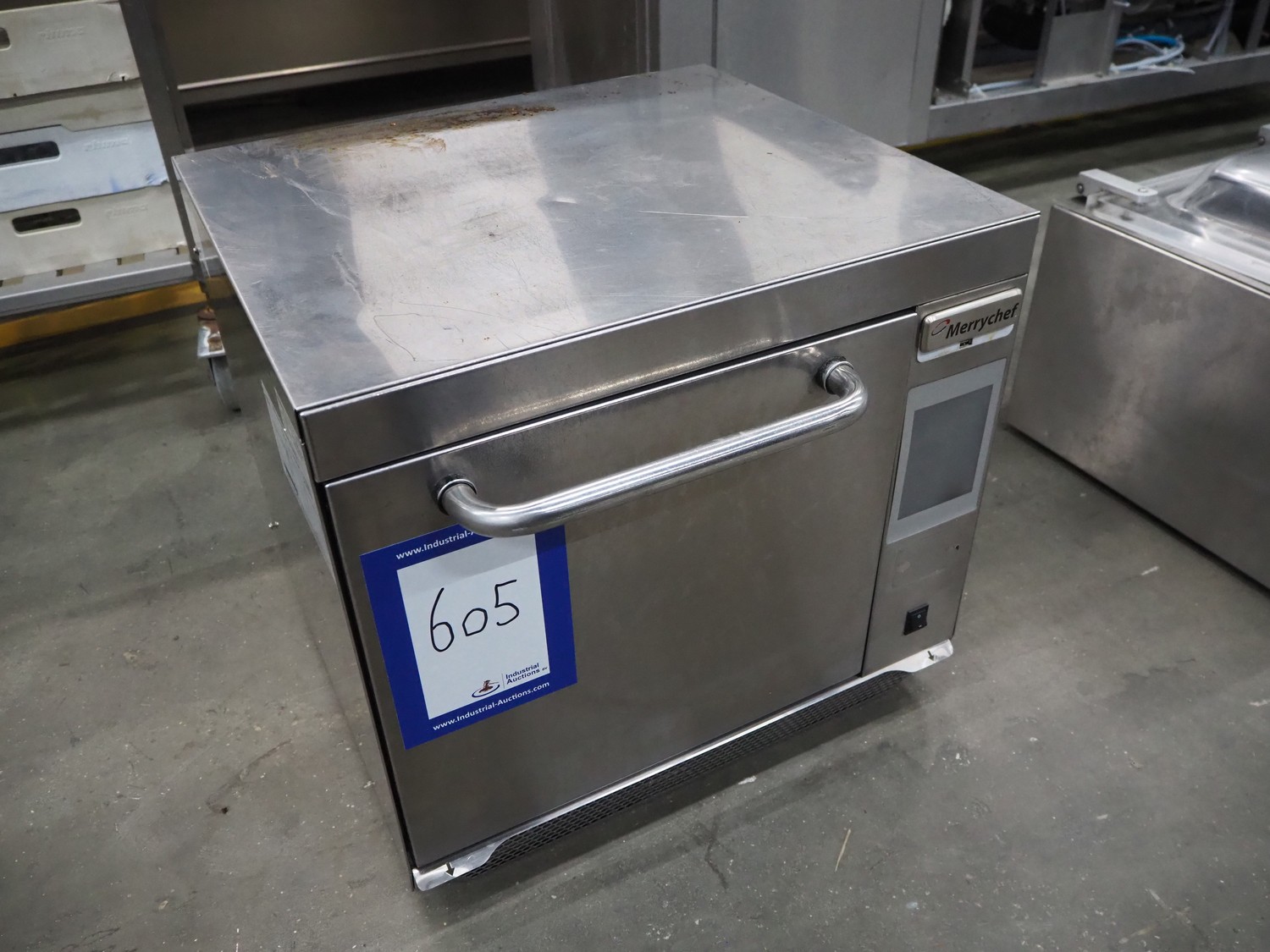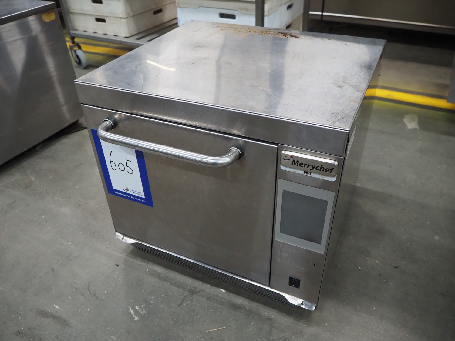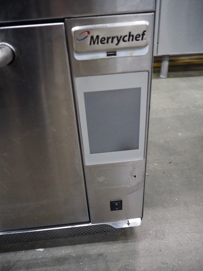 Merrychef turbo oven, model: eikon e3, serial number: 1402213091046, 400 V, 2 Ph, 50 Hz, 2 floors, dimensions each floor: 330 mm x 300 mm, total dimensions: 630 mm x 590 mm x 550 mm.