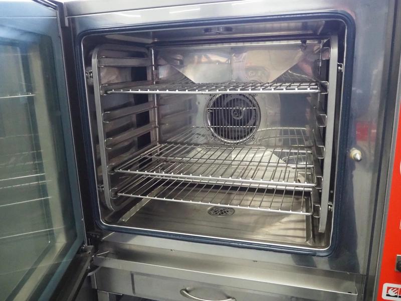 Franstal combi steamer on s/s frame, type: ME061T, serial number: LA020009220, 6 floors, floor dimensions: 530 mm x 300 mm, total dimensions: 950 mm x 900 mm x 1720 mm.