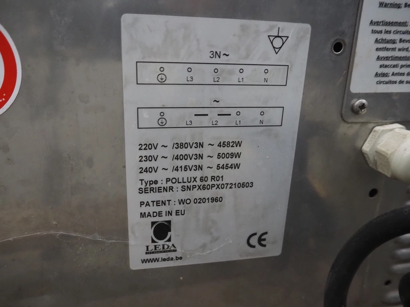 LEDA technologies oven for eggs, type: POLLUX 60 R01, serial number: SNPX60PXPX07210503, inside dimensions: 500 mm x 320 mm x 95 mm, total dimensions: 620 mm x 600 mm x 250.
