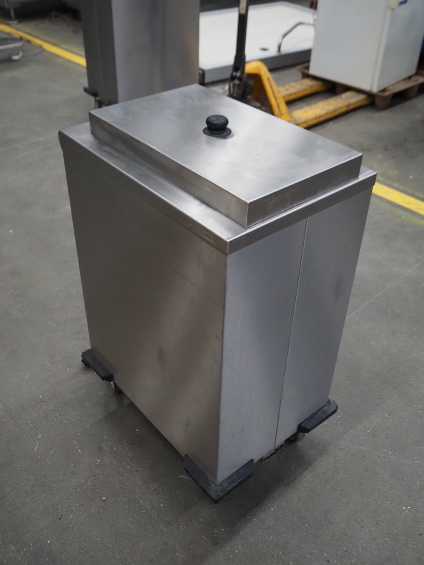 Mobile Containing B.V. heated cup dispenser, model: THS-MS/G, serial number: 188279, year of construction: 2016, dimensions: 400 mm x 670 mm x 1000 mm.