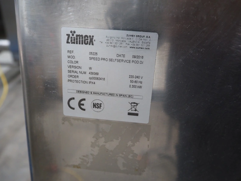 Zumex mobile juicer, model: SPEED PRO SELFSERVICE, serial number: 439369, year of construction: 09/2016, 220/240 V, 50/60 Hz, 0.300 kW, dimensions: 700 mm x 680 mm x 1750 mm.