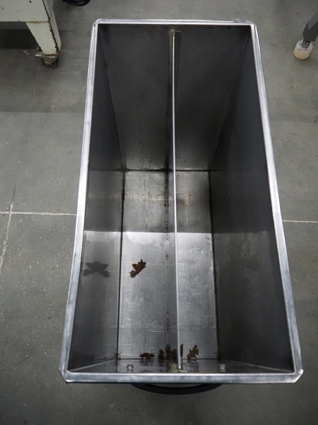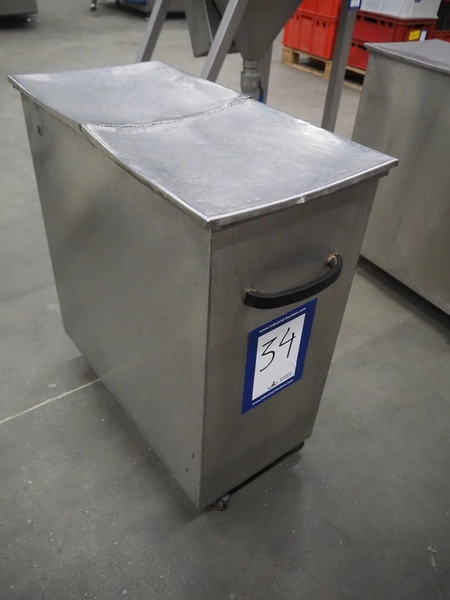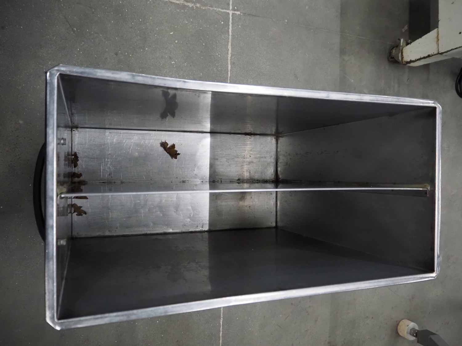 S/s trolley, inside dimensions: (2x) 640 mm x 150 mm x 620 mm, dimensions: 700 mm x 330 mm x 750 mm.