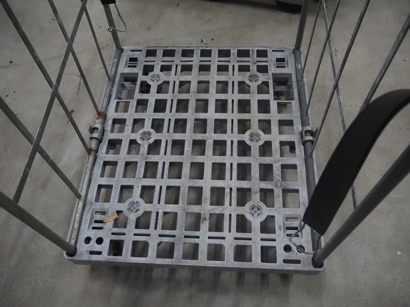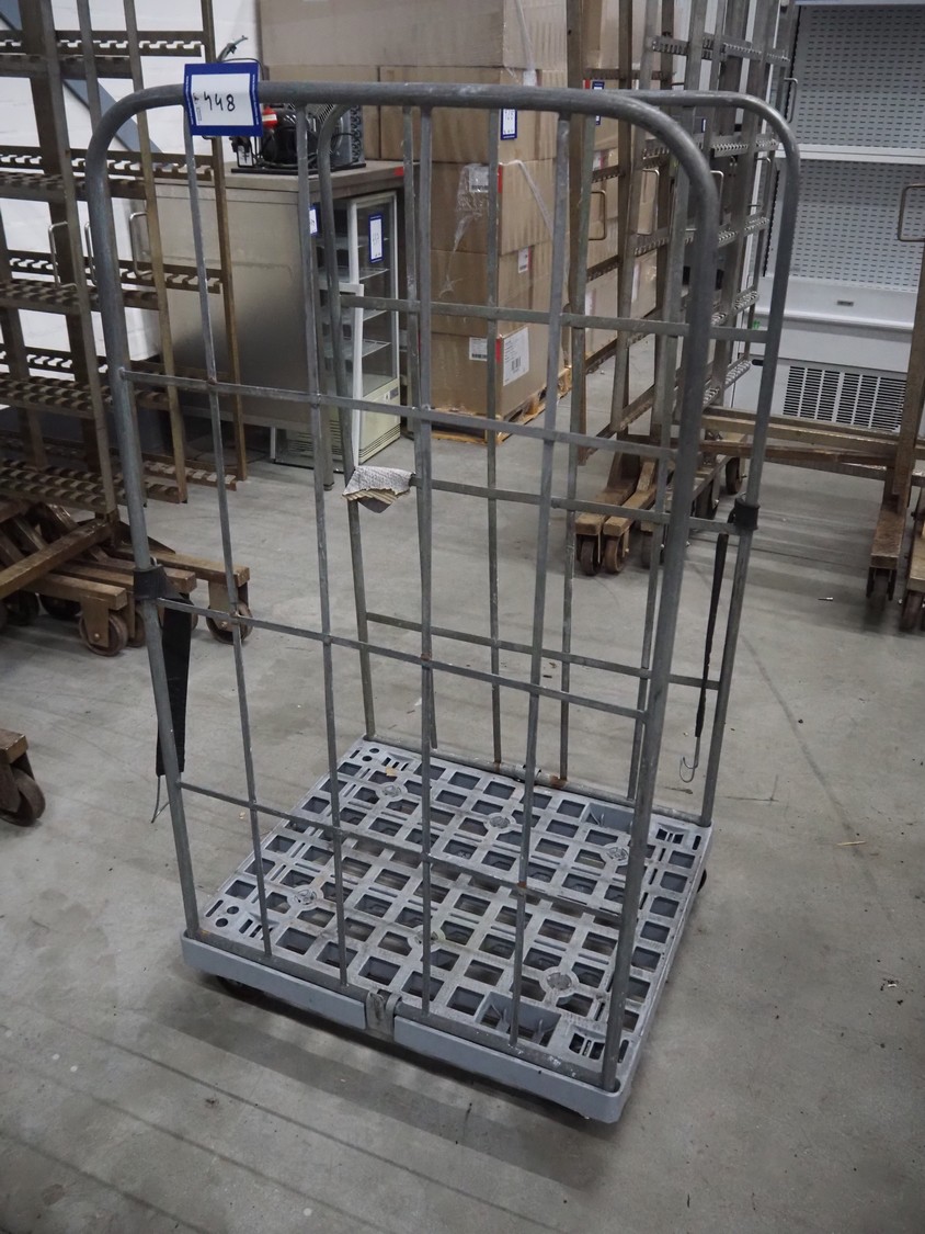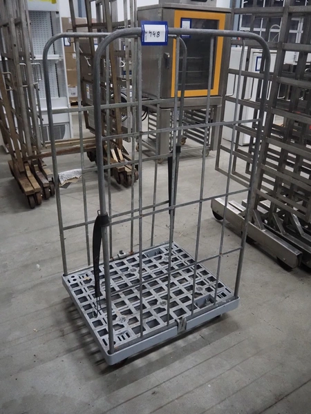 Steel trolley, dimensions: 820 mm x 730 mm x 1530 mm.