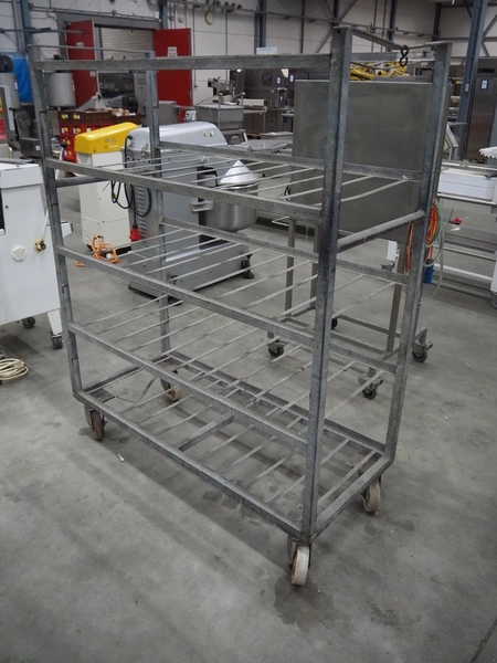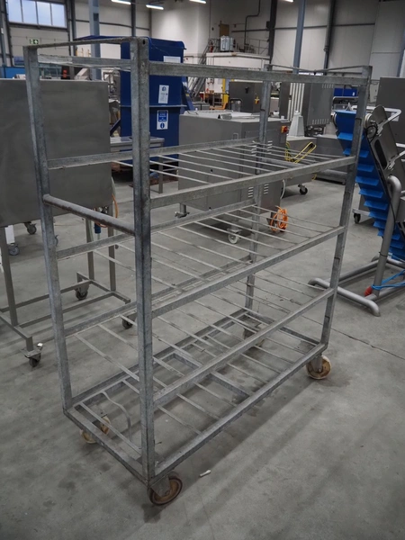 Steel trolley, 5 floors, dimensions floors: (5x) 1400 mm x 600 mm, dimensions: 1400 mm x 600 mm x 1730 mm.