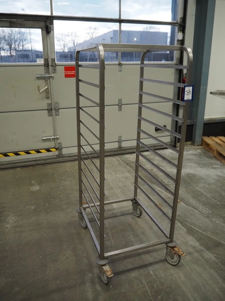 S/s trolley, 11 floors, dimensions each floor: 535 mm x 700 mm, total dimensions: 700 mm x 590 mm x 1600 mm.